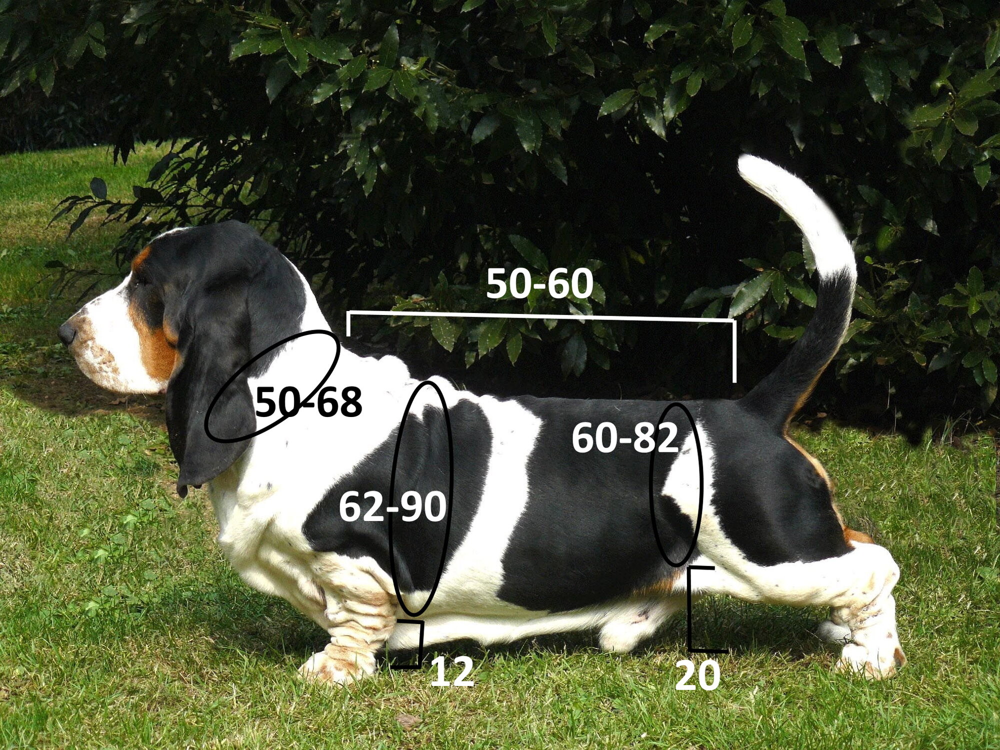 Длина спины (холка-хвост) 50 см + воротник 10 см. Общая длина молнии 60 см.