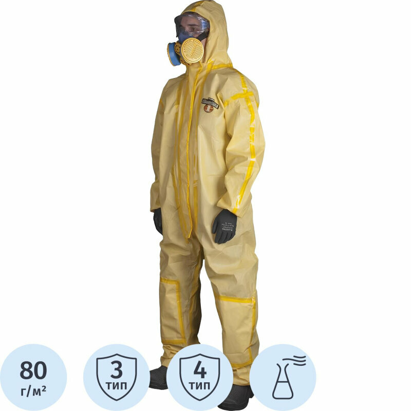 Комбинезон одноразовый с капюшоном ChemMax 1 желтого цвета - высокотехнологичный комбинезон химической защиты. Материал костюма сконструирован на основе последних разработок с использованием технологии многослойного ламинирования полимерных пленок. Костюмы ChemMax представляют собой эффективное сочетание требуемого уровня защиты с невысоким уровнем затрат. Костюмы химической защиты различаются между собой спектром допустимых химических веществ. -антистатическая обработка Химмакс 1; -легкий и гибкий материал; -особая конструкция комбинезона; -костюм отвечает требованиям по защите от радоактивных частиц; -подкладка из спанбонда впитывает пот и делает костюм приятным для ношения; -высокая прочность и надежность; Защита: тип 3 - защита от сильных направленных струй жидких химикатов; тип 4 - обеспечивает защиту от плотнораспыленных химикатов. Область применения: химическая и нефтехимическая промышленность, очистка резервуаров и сосудов для хранения жидких химикатов, при обработке агропромышленных культур химикатами, утилизация отходов, в местах разлива химикатов. Размер 46-50, рост 170-176 (M).