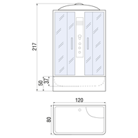 Закрытая универсальная прямоугольная душевая кабинка Ривер Сена с размерами 120х80х217 см, с удобными раздвижными дверьми из закаленного, ударопрочного, травмобезопасного матового стекла, толщиной 4 мм.