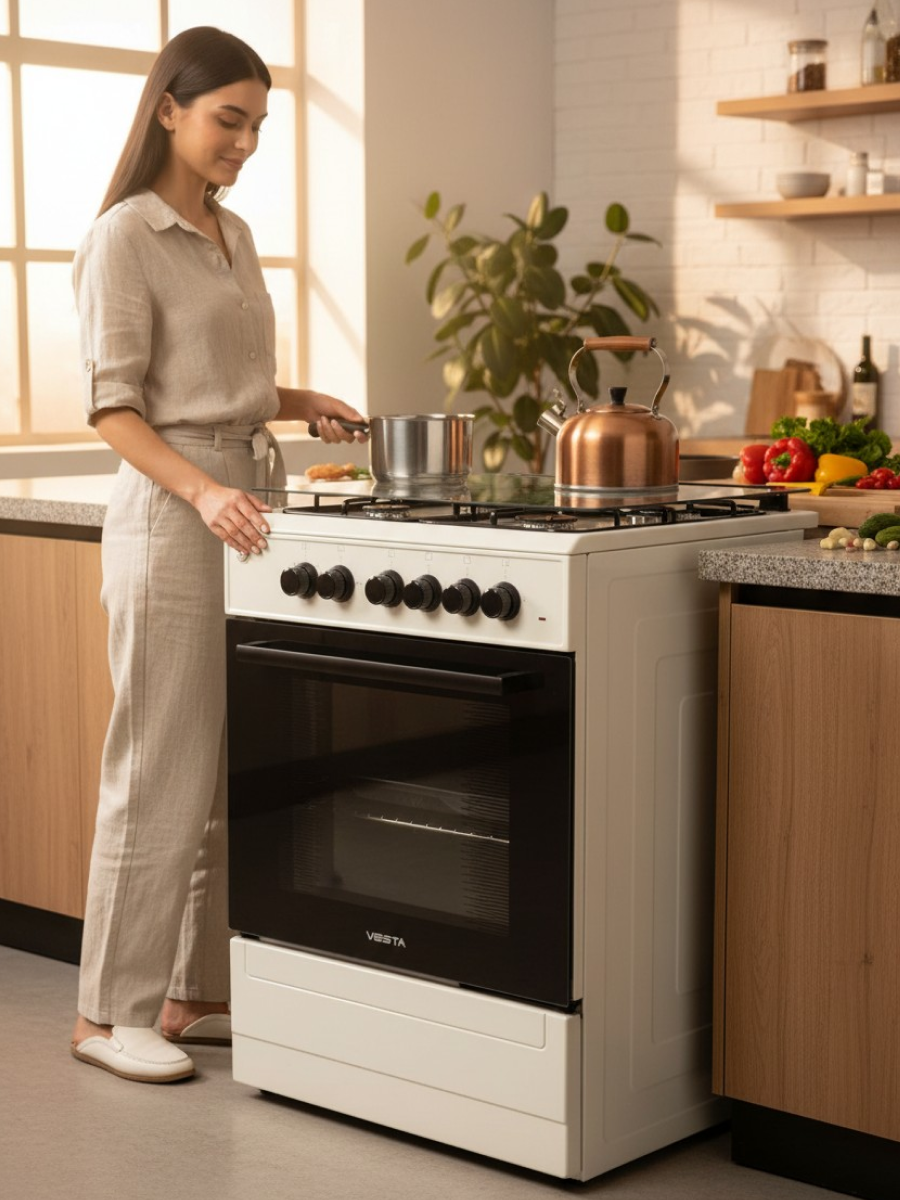 Комбинированная плита VESTA Valencia VGE, газовая, электрическая духовка, бежевая: сравнение цен, характеристики, фото, актуальное наличие и цены.