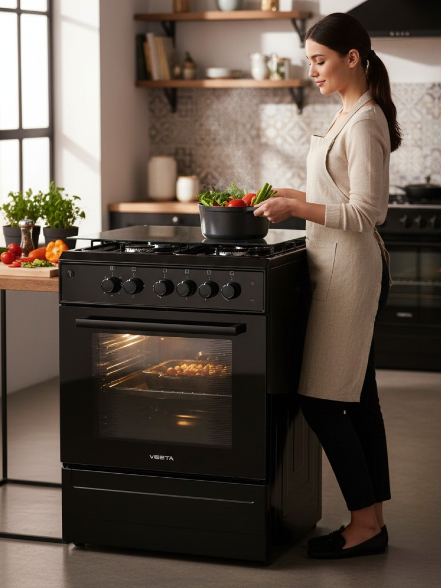 Комбинированная плита VESTA-VALENCIA VGE 10-E черная имеет эмалированную рабочую поверхность, наличие 4 конфорок разного размера и мощности значительно упрощают и ускоряют процесс одновременного приготовления нескольких блюд. Присутствует электрическая духовка и механическое управление. Стекло в дверце духового шкафа является съемным, благодаря чему, очень удобно очищать дверцу после пользования газовой плитой. Также, следует отметить, что стекло является каленным и может выдержать критические температуры. Функция электроподжиг конфорок способно значительно сэкономит ваше время и избавит от необходимости каждый раз при включении пользоваться спичками.