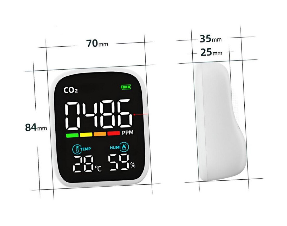 - Тип датчика: недисперсионный инфракрасный (NDIR)