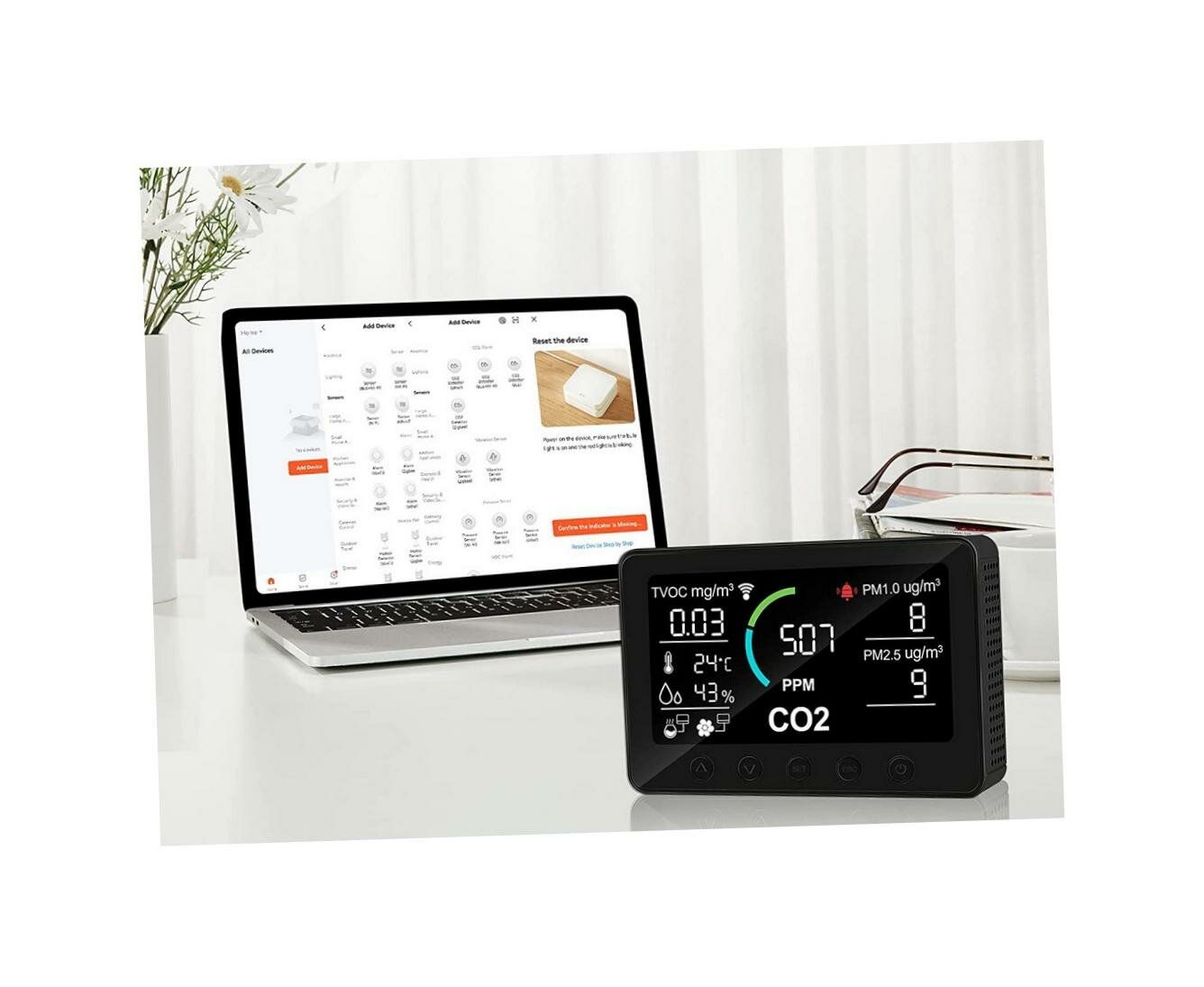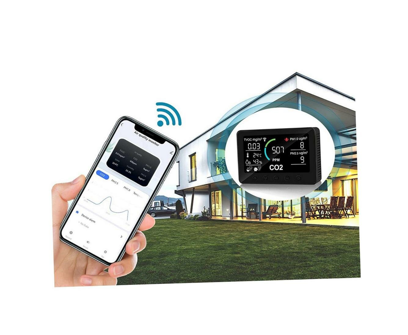 Купить Комбинированный датчик Tuya Wi-Fi измеритель качества воздуха 6 в 1 HTI-0261-BT (Wi-Fi) (O41861MN): CO2, влажность, температура, PM2.5, PM1.0, TVOC с доставкой по всей России. Комбинированный датчик Tuya Wi-Fi измеритель качества воздуха 6 в 1 HTI-0261-BT (Wi-Fi) (O41861MN): CO2, влажность, температура, PM2.5, PM1.0, TVOC: сравнение цен, характеристики, фото, актуальное наличие и цены.