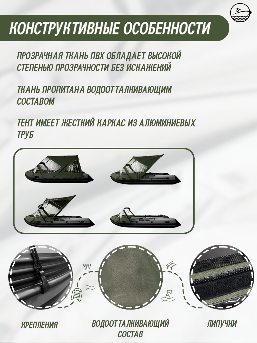 Комбинированный тент для лодки ПВХ – это специальное покрытие, которое используется для защиты лодки от воздействия неблагоприятных погодных условий (дождь, снег, солнце).