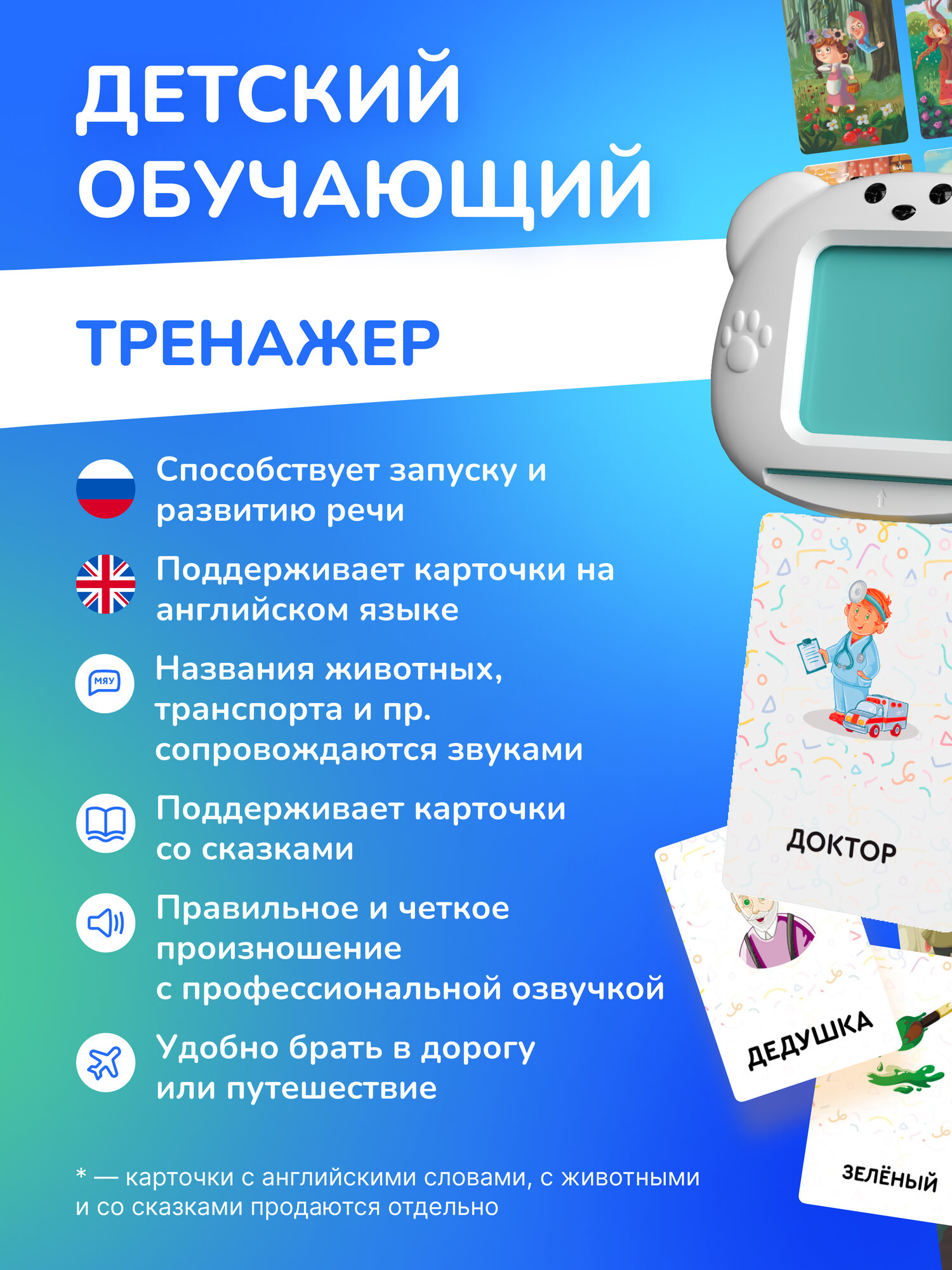 Остальные карточки на русском и английском языке и сказки продаются отдельно.