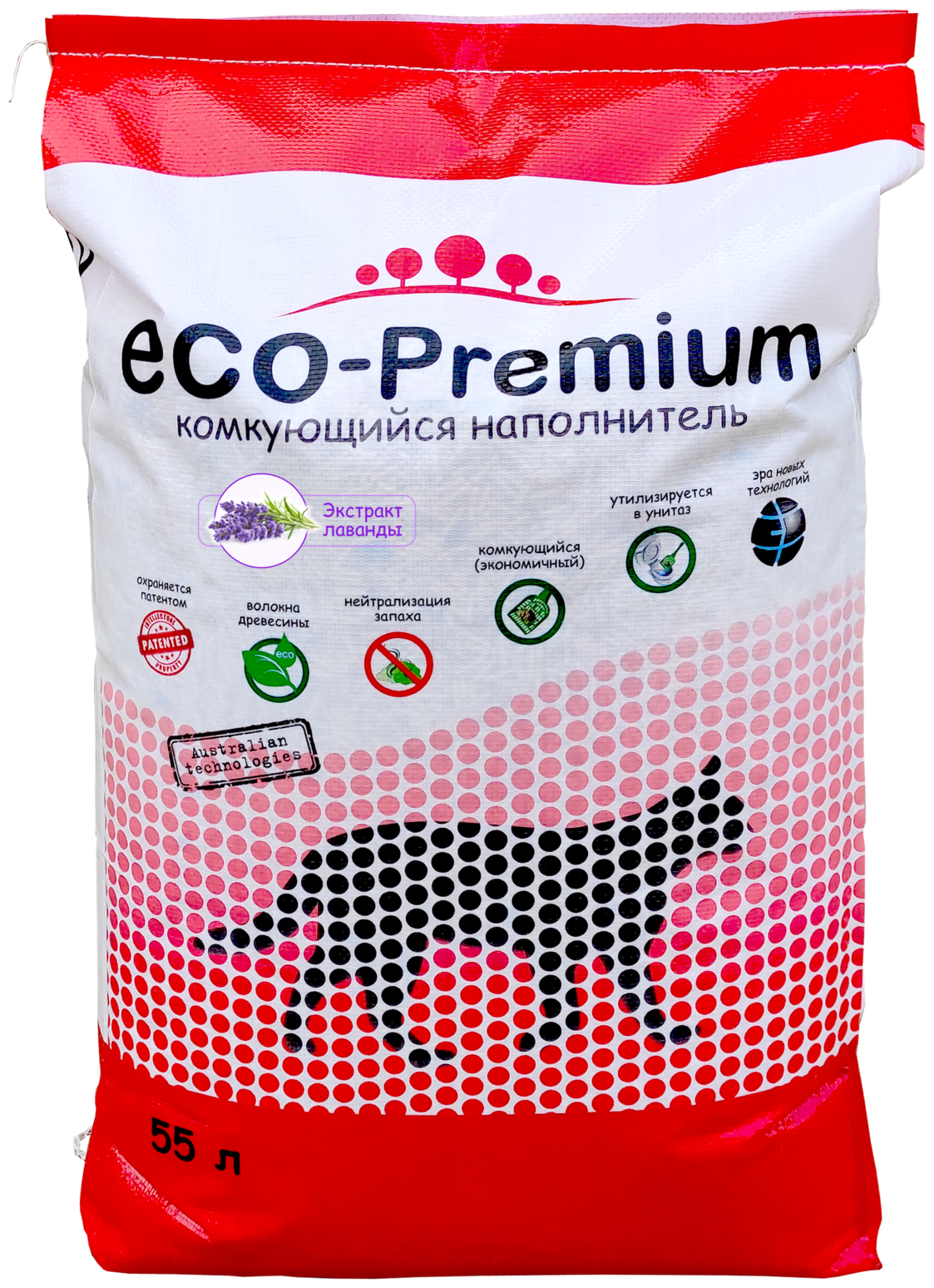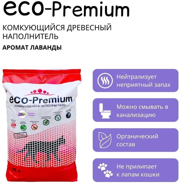 Купить ECO-Premium наполнитель древесный комкующийся с ароматом лаванды — 55 л (20,2 кг) с доставкой по всей России.