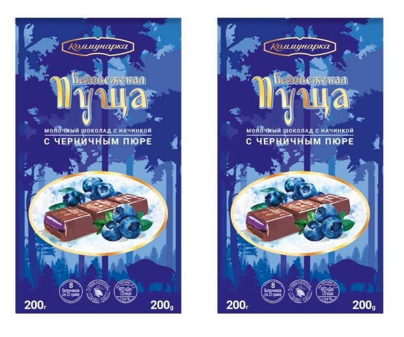 Коммунарка Шоколад молочный, Беловежская пуща, с черничным пюре, 200 г, 2 шт: сравнение цен, характеристики, фото, актуальное наличие и цены.