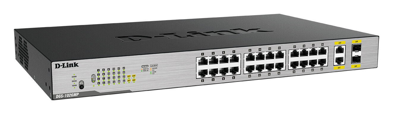 Коммутатор D-Link DGS-1026MP, количество портов: 24×1 Гбит/с (DGS-1026MP/B2A): сравнение цен, характеристики, фото, актуальное наличие и цены.