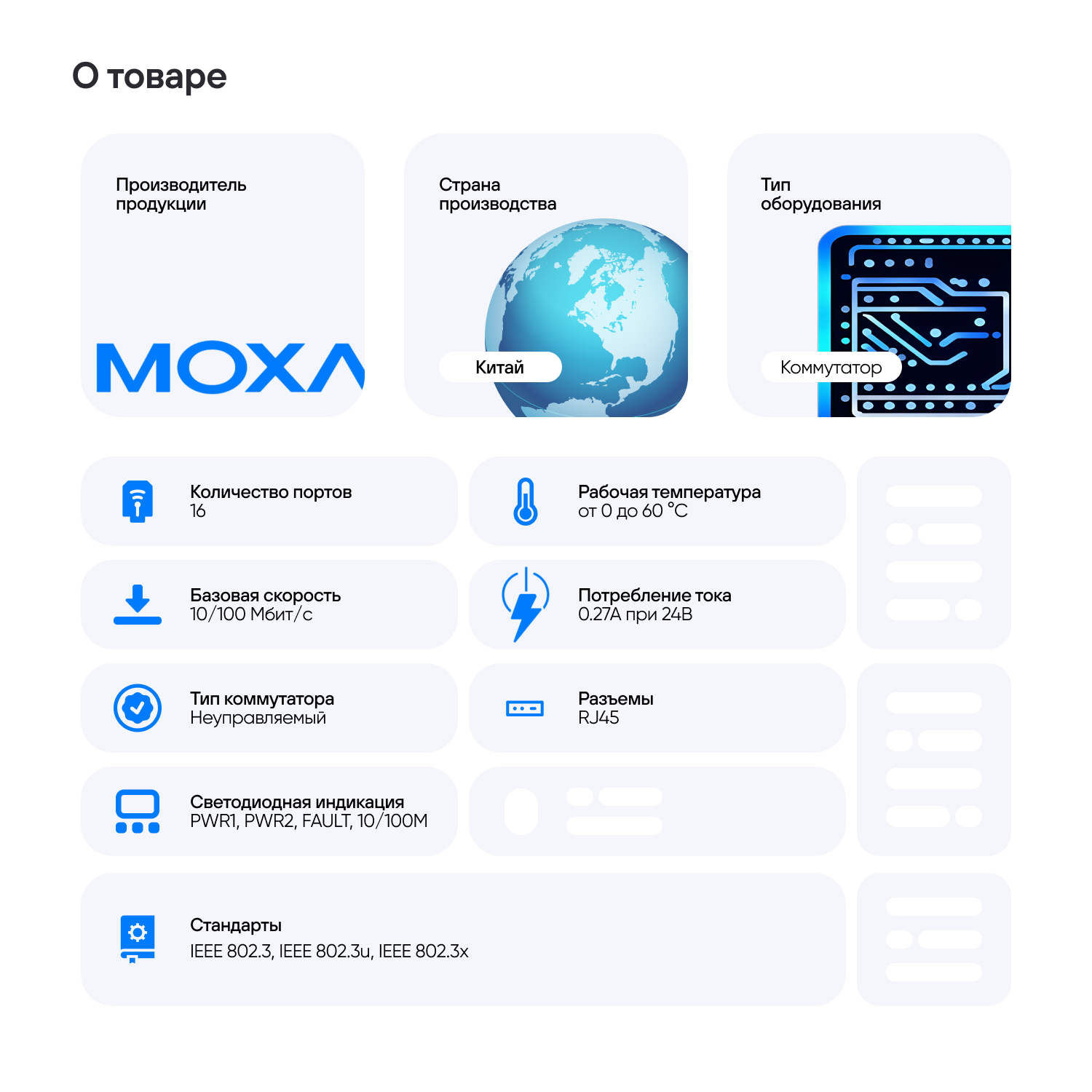 Коммутатор Moxa EDS-316 16хRJ45 10/100Base-TX 00-01165416 совместим для замены с ISW-1600T: сравнение цен, характеристики, фото, актуальное наличие и цены.
