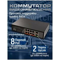 Коммутатор неуправляемый (свитч) 8 PoE+2 Uplink. Передача данных и питания на расстояние до 250 м: сравнение цен, характеристики, фото, актуальное наличие и цены.