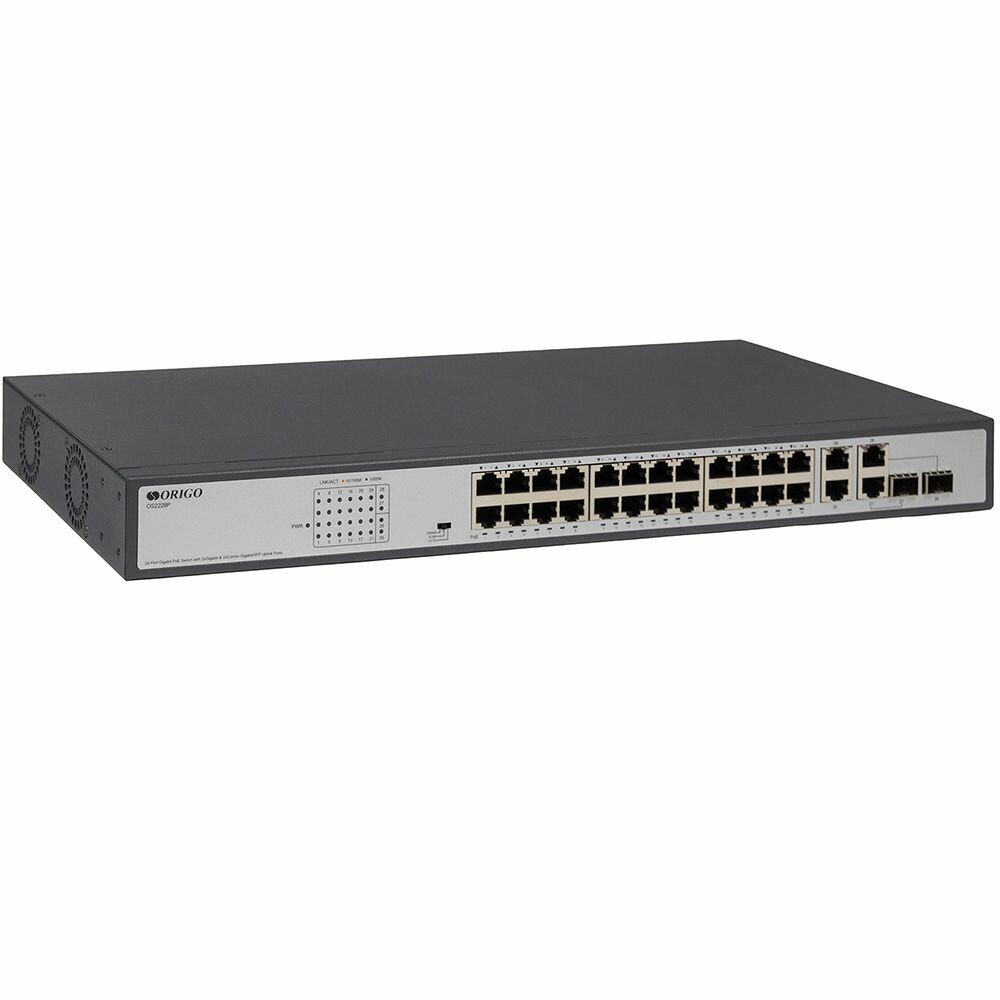 Коммутатор ORIGO OS2228P/370W/B1A Неуправляемый PoE-коммутатор 24x1000Base-T PoE+, 2x1000Base-T, 2×1.: сравнение цен, характеристики, фото, актуальное наличие и цены.