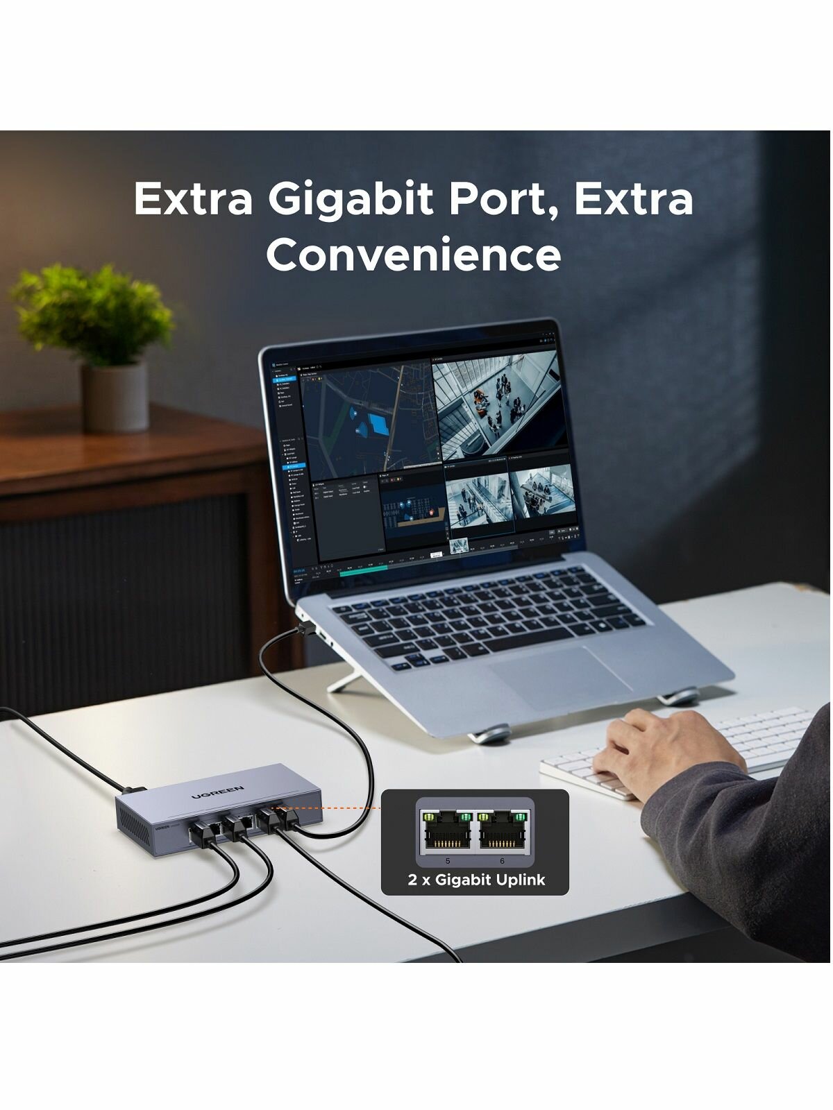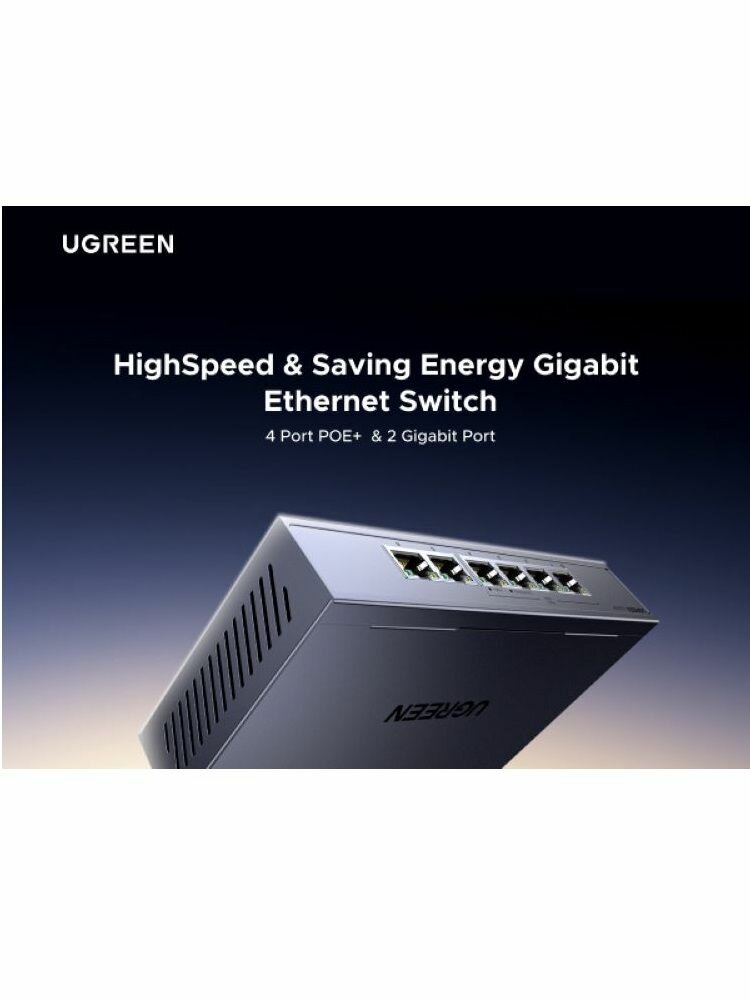 Коммутатор сетевой UGREEN CM741 (35371EU) 6-Port 4*PoE&2*Gigabit Ports Ethernet Switch. Цвет: серый космос: сравнение цен, характеристики, фото, актуальное наличие и цены.