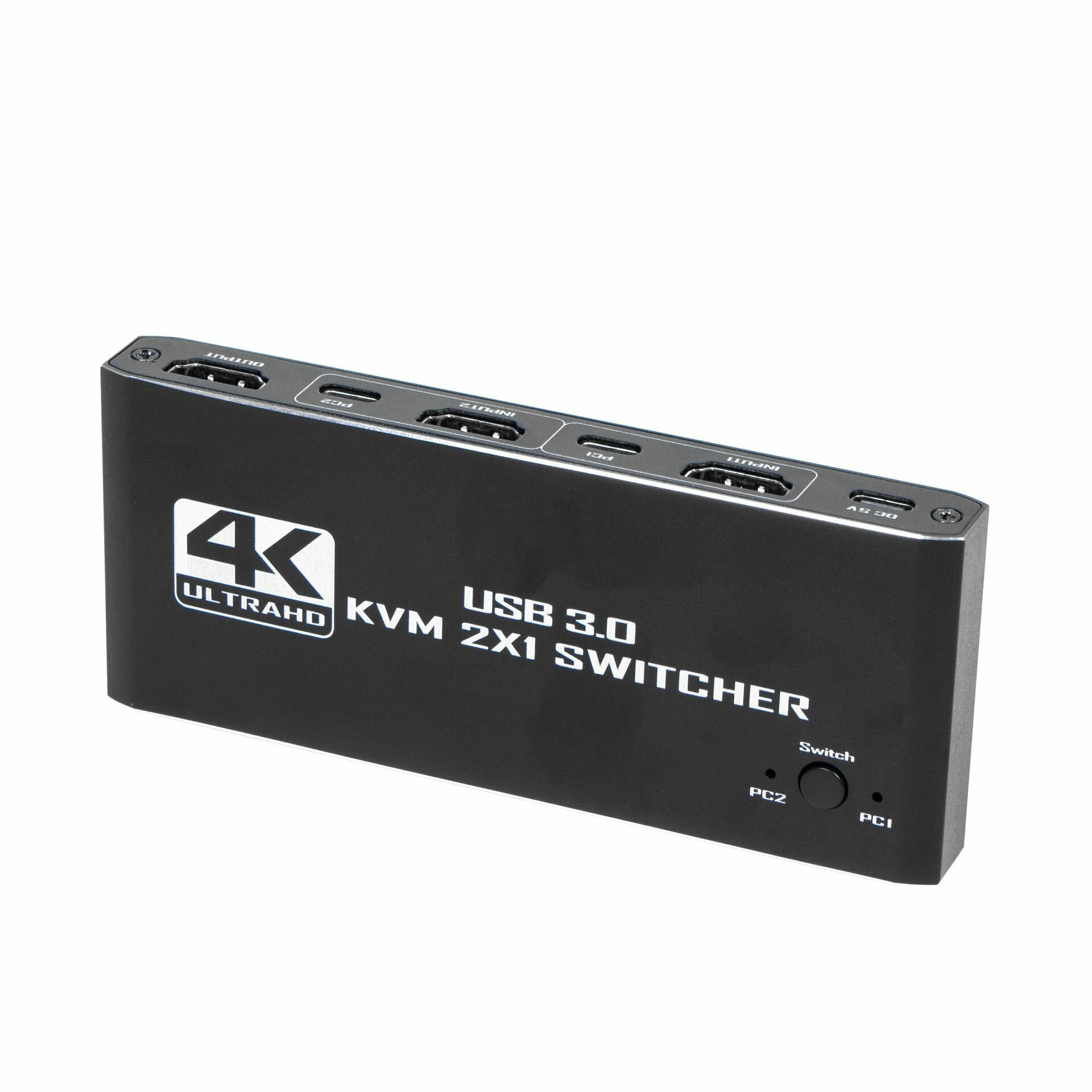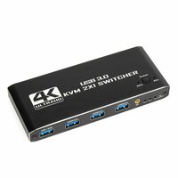 Обновленная версия переключателя HDMI KVM, 4K @ 60Hz USB-переключатель 2x1 порт HDMI 2.0 + 4 порта USB KVM, подключение 2 компьютеров к 1 монитору, беспроводная клавиатура и мышь, USB-диск, принтер, USB-камера. Модель 2024 года! 4K @ 60Hz 2-портовый USB KVM HDMI switch box 4K HDMI KVM switch box позволяет использовать только один экран отображения+мышь и клавиатуру для управления двумя компьютерами. Выносной ИК приемник позволяет переключаться между устройствами с помощью ИК-пульта. Длина приемника 1.5 метра. Встроенный высокопроизводительный чип, использующий высокотехнологичное декодирование, подключи и играй, драйвер не требуется. Это будет идеальный выбор для предприятий, офисов, мультимедийного обучения, конференц-залов, игровых комнат, домашних кинотеатров, исследований и тестирования и т. д. Разрешение 4K Ultra HD Порт HDMI KVM switch 2 поддерживает полную полосу пропускания 18 Гбит /с, поддерживает разрешения до 4K при 60 Гц, HDMI2.0b, HDCP2.2 YUV: 4: 4: 4 дискретизация цветности, что делает отображаемое изображение более тонким и реалистичным и действительно радует ваши глаза. (Поддержка высокого разрешения 4k @ 60Hz, обратная совместимость с устройствами 4K @ 30Hz, 1080P и ниже.) Обновленные USB входы: два разъема USB-C на устройстве для подключения компьютеров. Источник питания USB-переключателя обеспечивает более стабильную передачу сигнала. Подключи и играй, экономь свое пространство. Поддержка беспроводной клавиатуры, мыши и механической игровой клавиатуры. (В отличие от USB power, с помощью HDMI power легче разбудить устройство, когда компьютер находится в спящем режиме, что более удобно и экономит время) [Стабильное соединение и широкая совместимость] 4K 2-портовый HDMI KVM-коммутатор, совместимый с ПК, ноутбуками, Apple TV, PS3 / PS4 / PS5, Xbox, проигрывателями Sony Blu-ray, проекторами, аудио / видеоприемниками и большинством устройств с поддержкой HDMI. Высокоскоростная передача, без задержек, без потери качества изображения и звука. (Переключатель HDMI поддерживает проводную / беспроводную клавиатуру и мышь, а также могут быть распознаны другие USB-устройства)