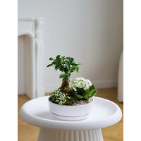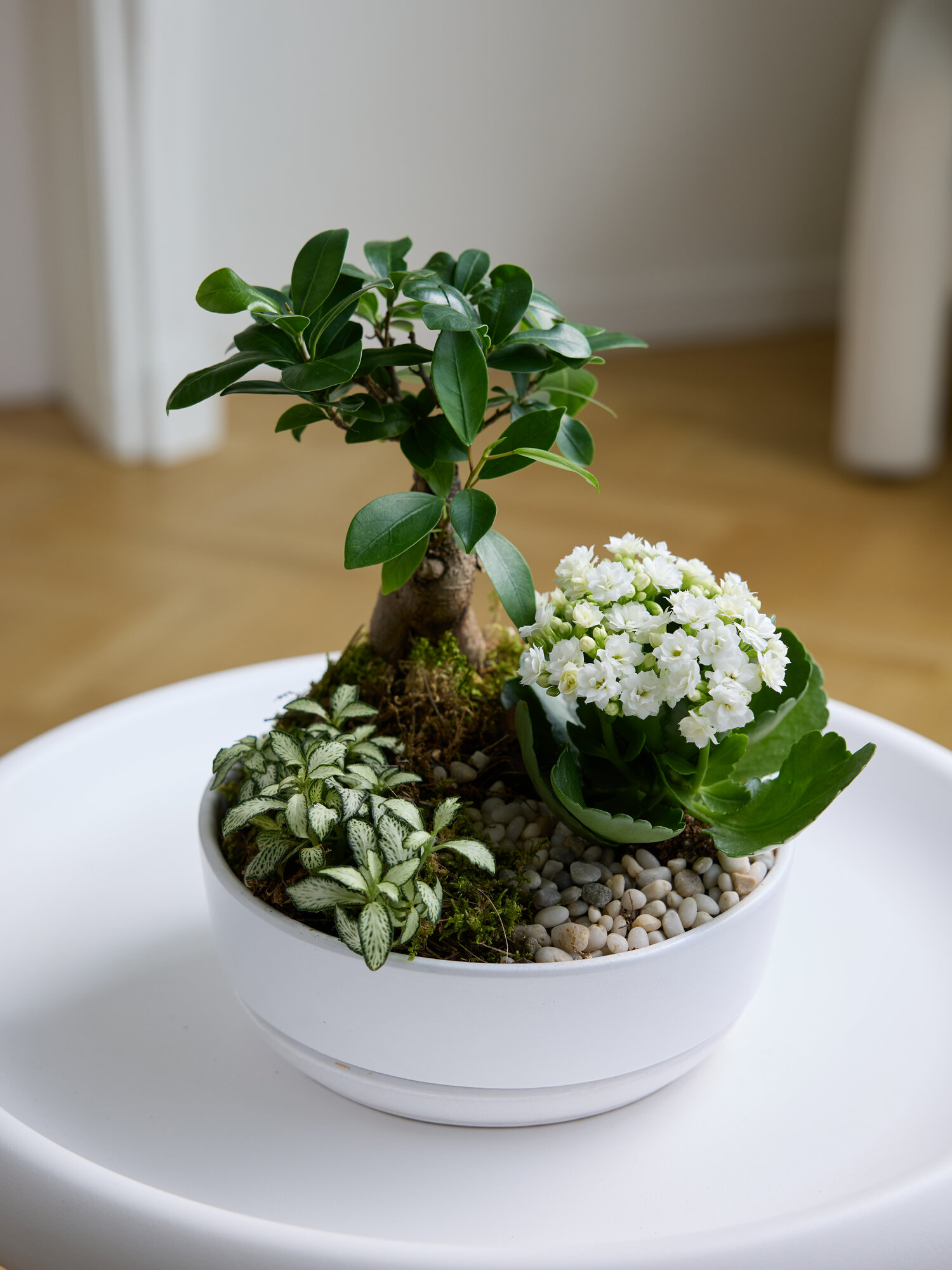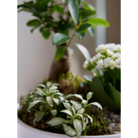 Обольстительная композиция с фикусом Микрокарпа Гинсенг - это прекрасное украшение для вашего дома или офиса. Фикус, каланхоэ и фиттония в этой композиции имеют разные формы и текстуры листьев, что добавляет глубину и разнообразие в дизайн. Размещение композиции возможно на столе, полке или в любом другом уголке вашего дома или офиса. Умеренный полив и освещение (свет или полутень) обеспечат здоровый рост и развитие растений Выбирая эту композицию с фикусом Микрокарпа Гинсенг, вы привнесете в свою жизнь нотку природной красоты и свежести.