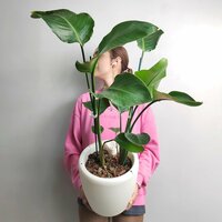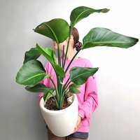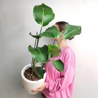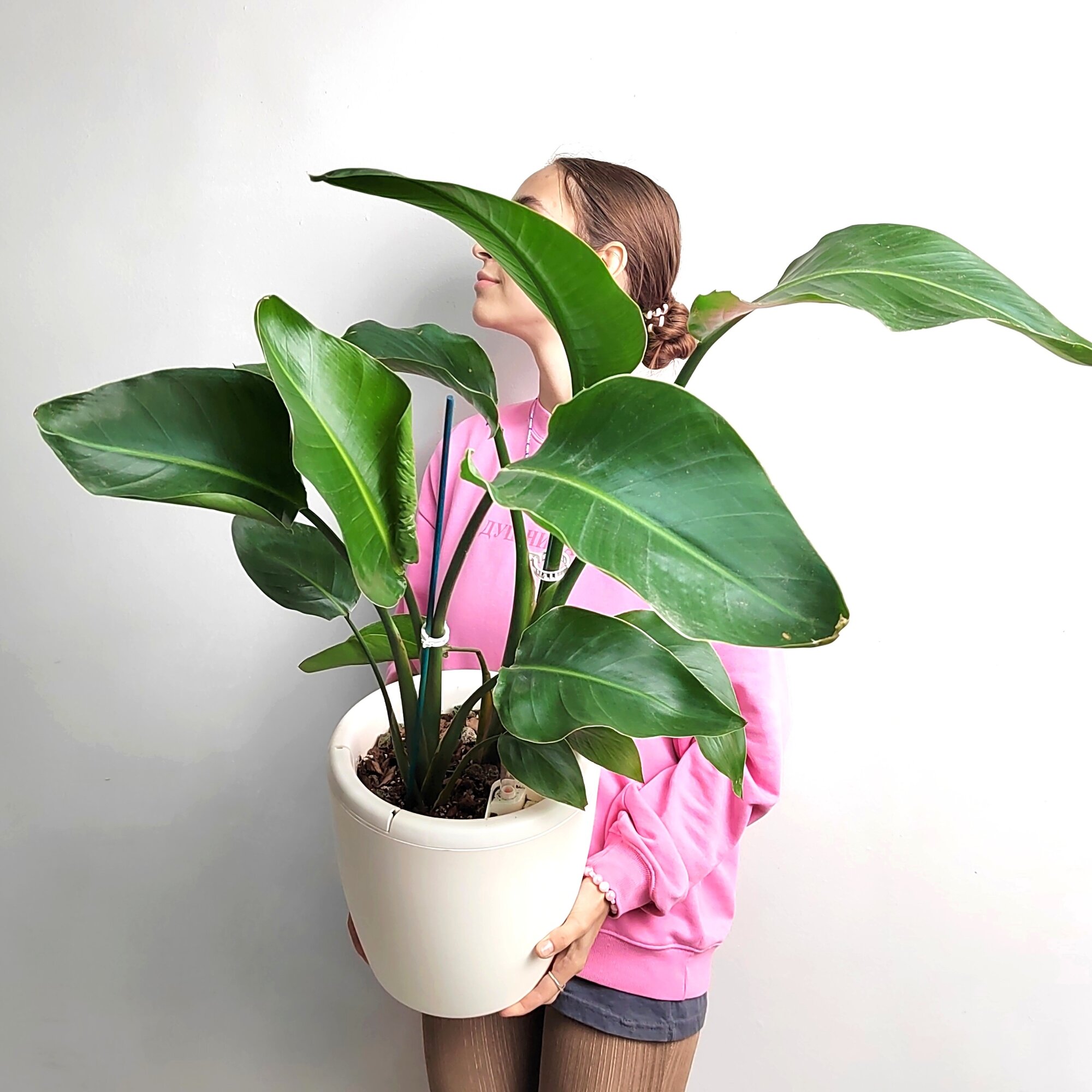 Стильное декоративное цветущее растение. Характеризуется прямостоячими, весловидными листьями на длинных черешках. Листья зелёные, глянцевые. Стрелиция выглядит очень экзотично, когда нижние листья разделяются по жилке и становятся перистыми. С возрастом формирует стебли. Редко вырастает выше 2 метров. Неприхотлива, проста в уходе.