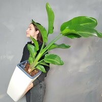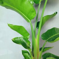 Стильное декоративное цветущее растение. Характеризуется прямостоячими, весловидными листьями на длинных черешках. Листья зелёные, глянцевые. Стрелиция выглядит очень экзотично, когда нижние листья разделяются по жилке и становятся перистыми. С возрастом формирует стебли. Редко вырастает выше 2 метров. Неприхотлива, проста в уходе.
