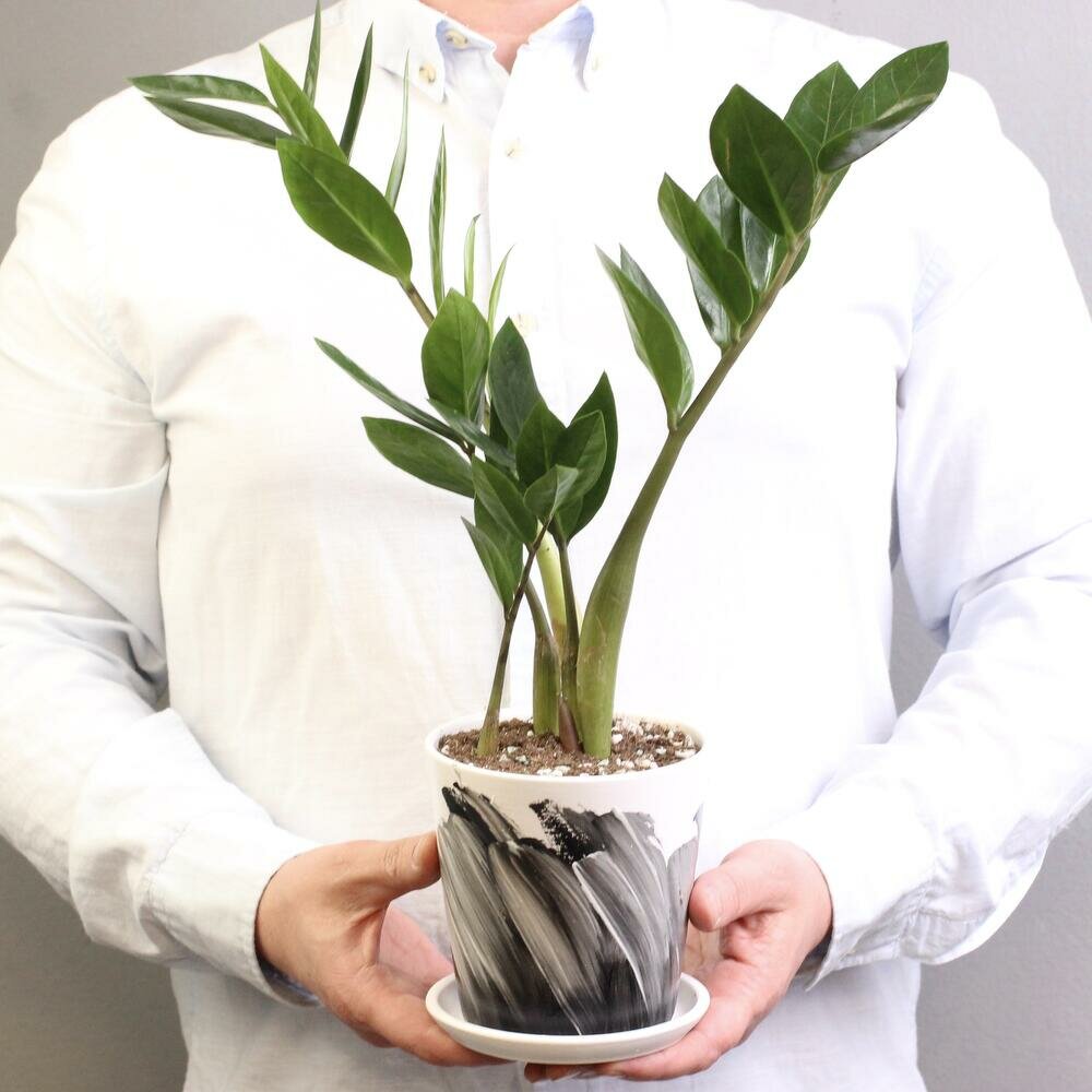 Купить Комнатное растение живое, Замиокулькас (долларовое дерево) в керамическом горшке, 38 см с доставкой по всей России.