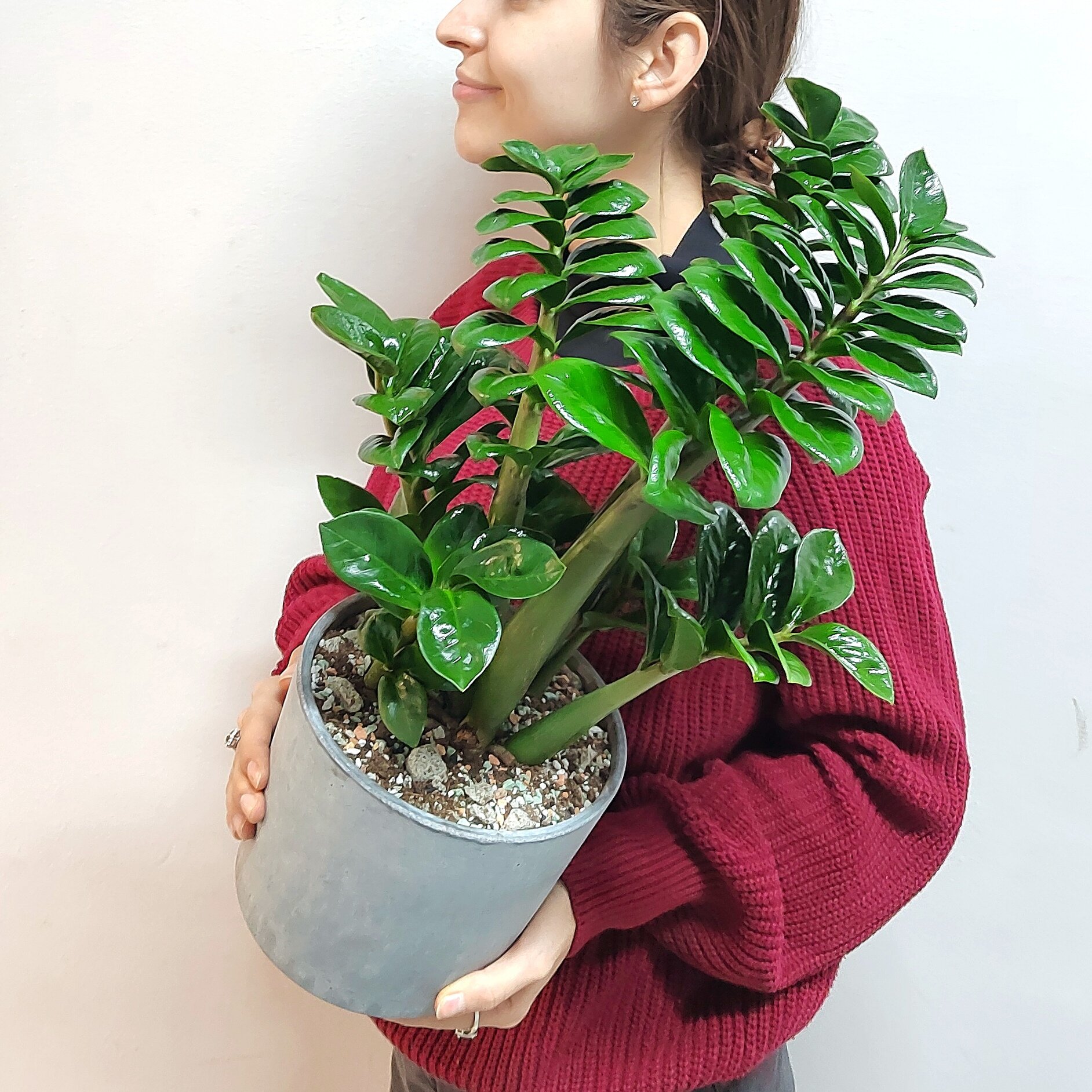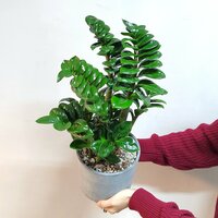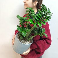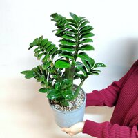 Купить Комнатное растение живое, Замиокулькас Зензи Жук (долларовое дерево) в бетонном горшке, 50 см с доставкой по всей России.