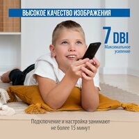 Телевизионная пассивная антенна обеспечивает прием сигналов телевидения до 30 каналов в зоне уверенного приема до 20 км от телевышки в зоне прямой видимости. Антенна изготовлена из современных высококачественных материалов российского производства, обладающих высокой прочностью и безопасностью при эксплуатации. Имеет возможность выбрать направление наилучшего приёма и ослабить помехи с других направлений.