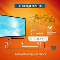 Готовый комплект оборудования РЭМО (пассивная комнатная антенна направленного действия с коэффициентом усиления 7 дБ + цифровая ТВ приставка с пультом + АV кабель для подключения к телевизору) включает в себя всё необходимое для приема современного вещания DVB-T2 на любом телевизоре. Достаточно один раз установить наше оборудование и вы можете смотреть общероссийское цифровое телевидение без помех и абонентской платы.