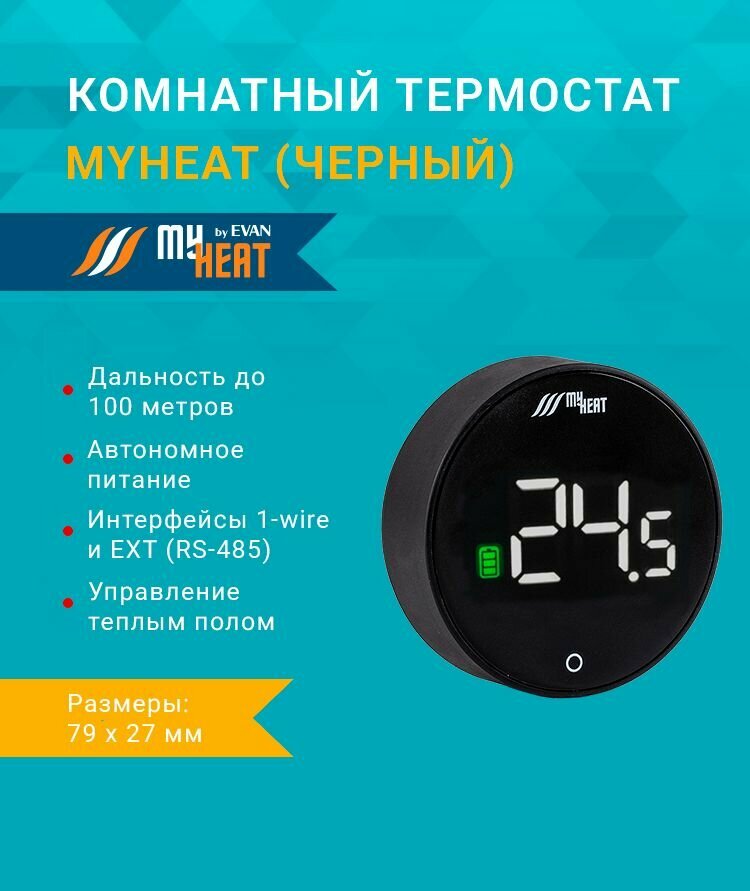 Универсальный комнатный термостат MyHeat со встроенным датчиком температуры и влажности. Предназначен для управления температурным режимом помещения и стяжки тёплого пола *