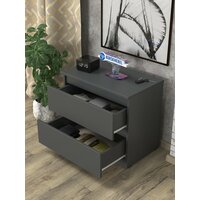 Комод №10. Компактный и стильный комод для хранения вещей отлично подойдет для прихожей или гостиной, гармонично будет смотреться в спальне или в квартире-студии. Цвет Антрацит находится в более темной части серой палитры. Он является доминирующим и имеет металлический блеск, который придает ему вид черный, но одновременно переходящего в серый. Помимо создания контраста, этот строгий нейтральный декор отлично смотрится в сочетании с текстурой дерева и репродукциями других материалов. Изделие имеет два довольно просторных выдвижных ящиков для хранения аксессуаров, одежды, белья, книг, документов, косметики и других личных вещей. Изделие поставляется в разобранном виде. Хорошо упаковано в гофротару вместе с необходимой фурнитурой для сборки и подробной инструкцией. Мы как прямые производители мебели гарантируем вам высокое качество товара. Вся продукция сертифицирована.