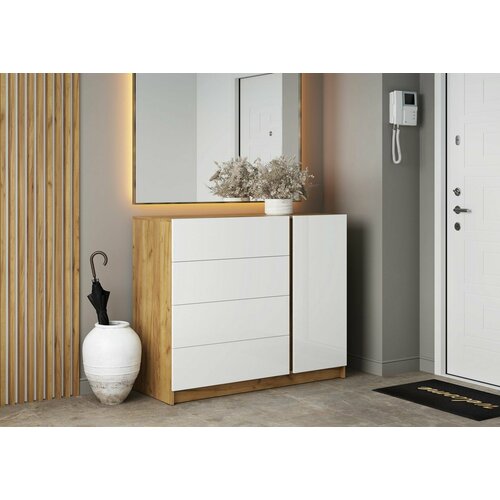 Комод для одежды с ящиками Дуб Крафт золотой/Фасад МДФ Белый глянец, Бостон, 120х47,7х99,5 см Стиль: сравнение цен, характеристики, фото, актуальное наличие и цены.