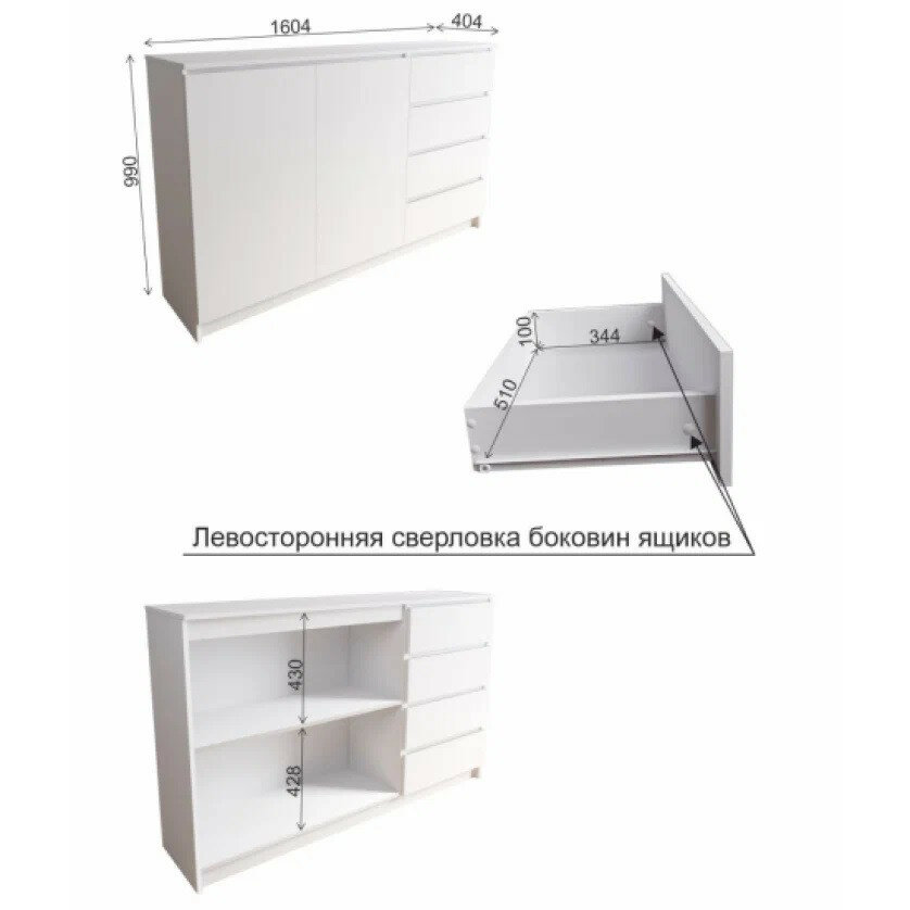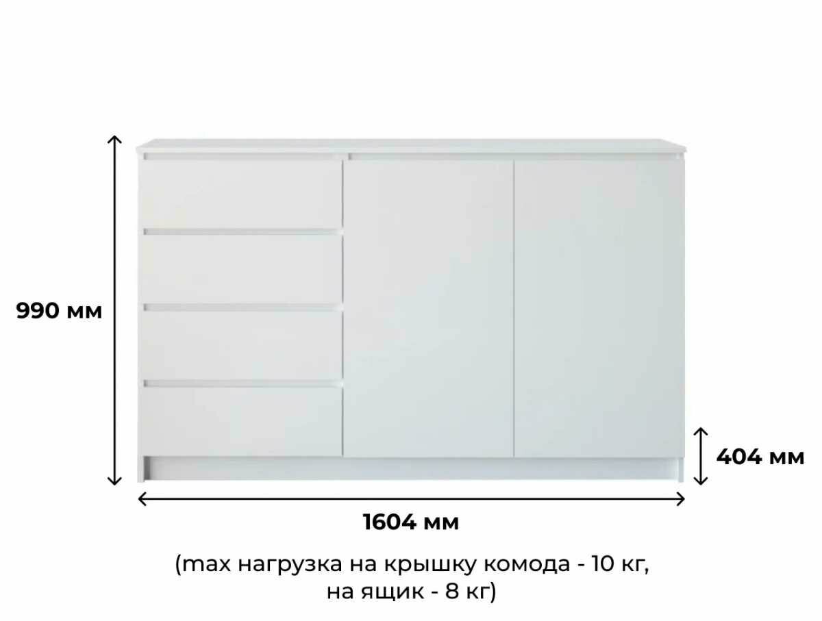 Комод 4 ящика 2 двери МС Мори МК 1600.1 (МП) Белый, мебельная фабрика — ДСВ мебель: сравнение цен, характеристики, фото, актуальное наличие и цены.