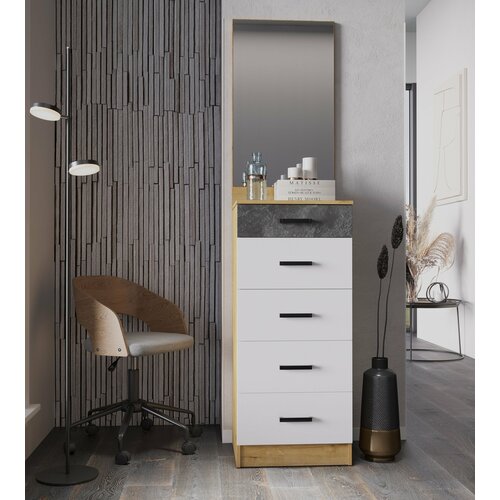 Комод выполнен в современном стиле, что позволяет ему гармонично вписаться в любой интерьер. Цвет "Дуб вотан / Белый гладкий" придает изделию изысканный вид, а матовая поверхность добавляет элегантности.