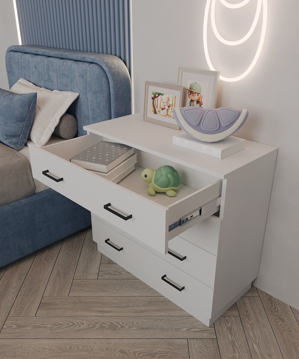 Комод Хит Белый Классический , удобный и функциональный Имеет небольшую высоту и глубину, благодаря чему займет минимум места без потери основного пространства Выполнен из качественного ЛДСП с учетом применения всех основных современных технологий обработки материалов Система хранения оборудована четырьмя выдвижными ящиками с качественными шариковыми направляющими Размер ящика позволяет разместить все необходимые вещи: текстиль, детские игрушки, аксессуары Прочная и надежная столешница комода может быть использована в качестве подставки под ТВ или другие предметы интерьера Информация о цвете товара смотрите в карточке товар с указанием артикула цвета Характеристики: Форма поставки: в разобранном виде Материал: ЛДСП Размеры Ш75,2/Г38/В82,7 Вес упаковки: 24,9 кг Модель икеа Особенность: простота сборки, инструкция по сборке и все необходимые комплектующие в наличии Сертификат качества продукции Производство Россия.