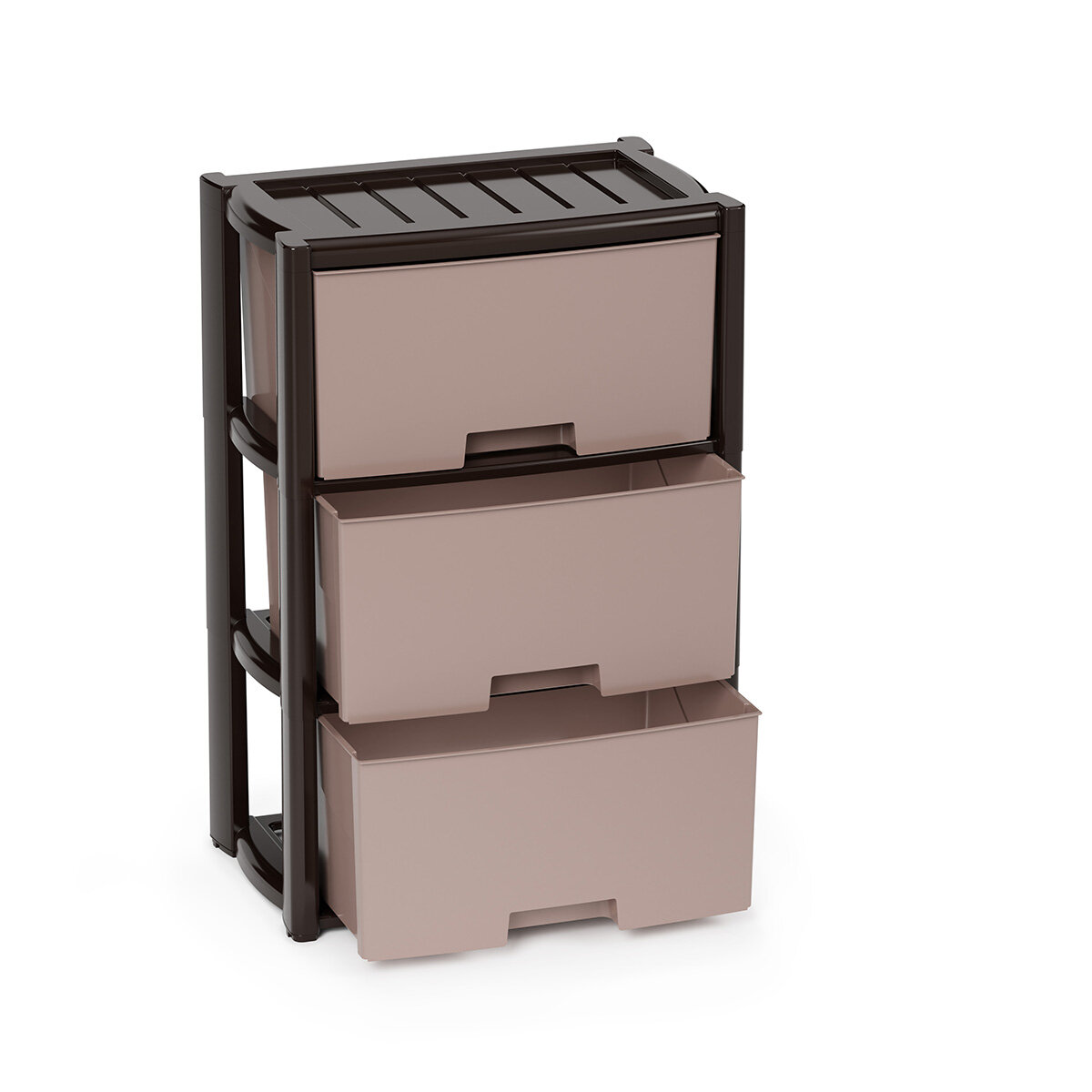 Пластиковый комод "Колорит малый" 3 секции венге. Артикул - м7835 Производитель - Альтернатива (Россия) Особую прочность комоду придает его цельная конструкция перегородок. Комод имеет выдвижные и достаточно вместительные ящики. На крышке и перегородках предусмотрены ограничители, благодаря которым ящик не будет вылетать при открывании. Благодаря небольшому весу и компактному размеру, комод легко устанавливается и передвигается. Комод упаковывается в индивидуальную упаковку и будет поставляться уже в собранном виде.