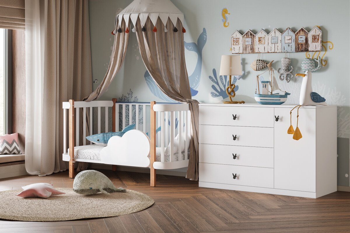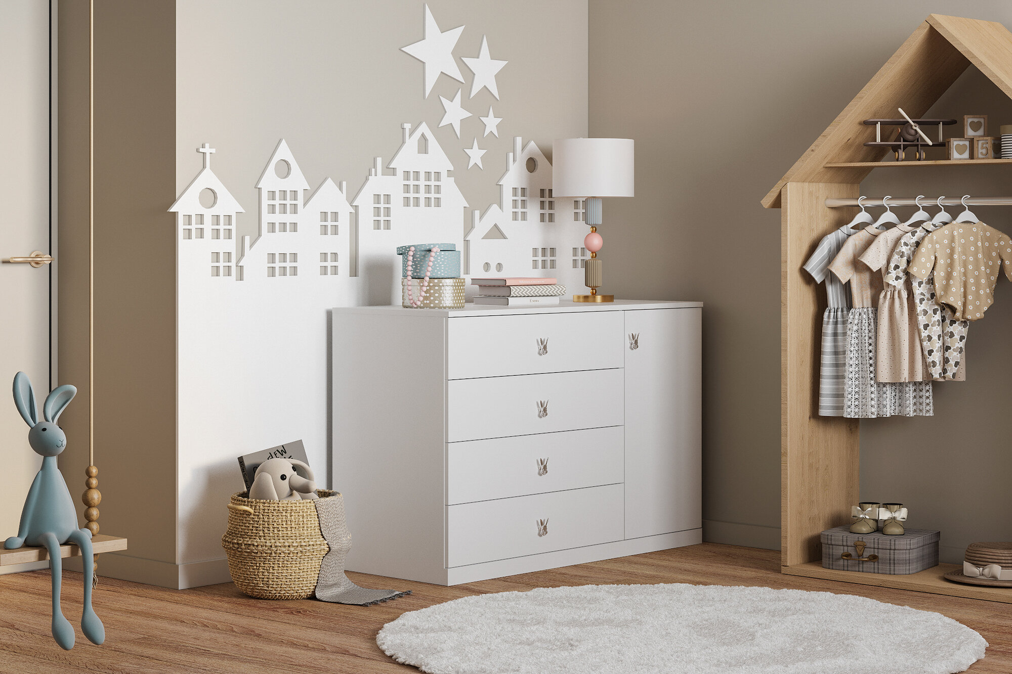 Комод Банни-2 Белый для одежды 120*80*52 Мегамебель