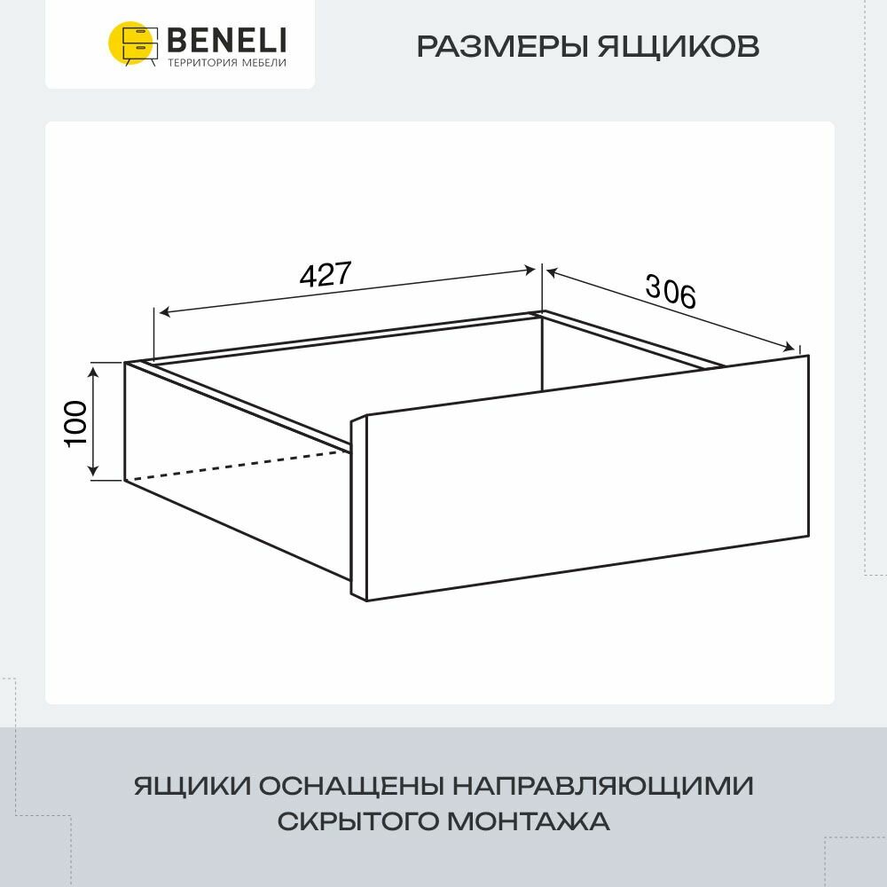 За счет наличия выдвижных ящиков на шариковых направляющих полного выдвижения, комод позволит решить вопрос хранения вещей.