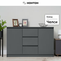 Комод для одежды и вещей с ящиками и дверцами Челси 2 двери 3 ящика, 120х76х45 см, Графит: сравнение цен, характеристики, фото, актуальное наличие и цены.