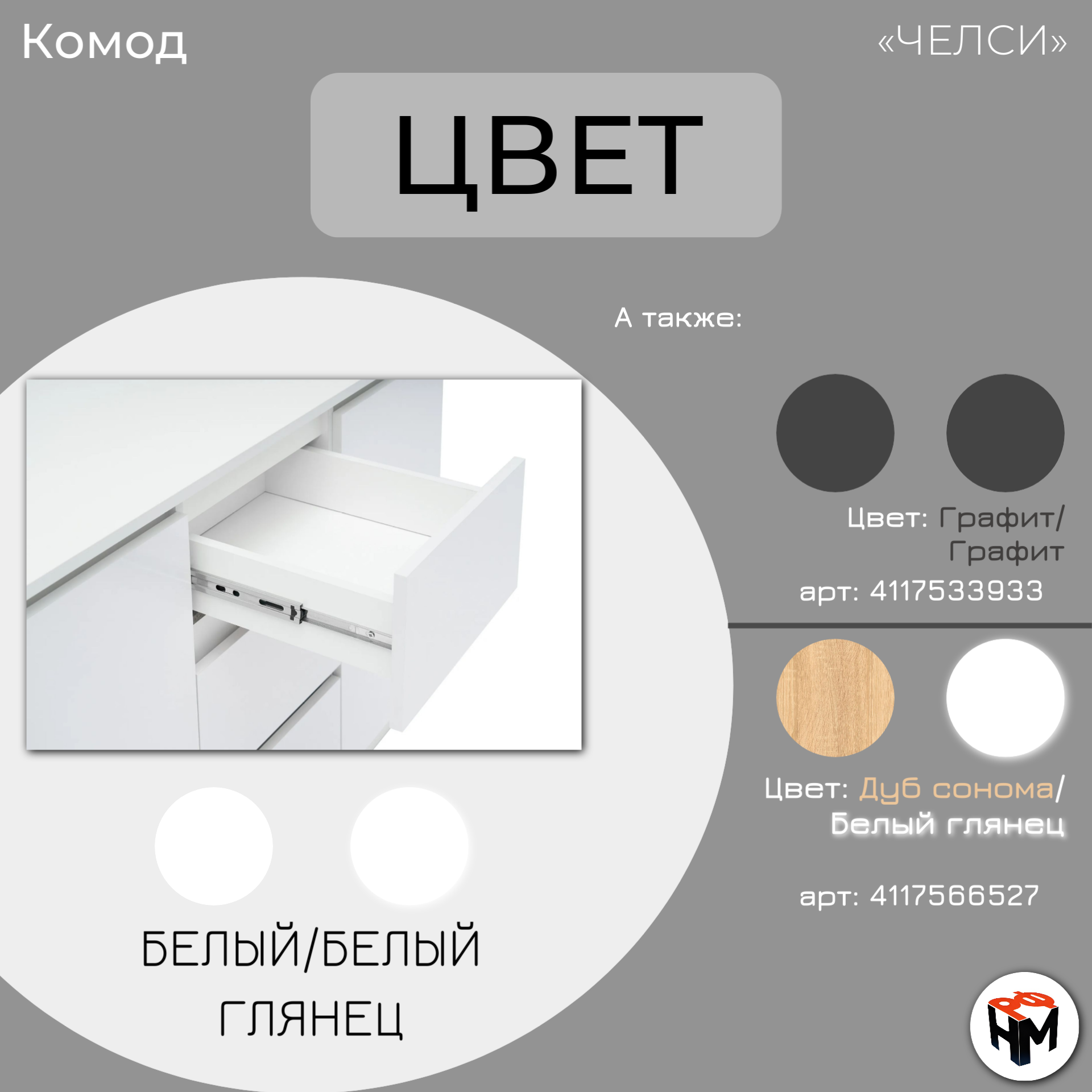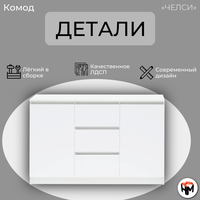 Купить Комод для одежды Челси 2 дверки 3 ящика, Белый глянец, Белый, 120х76,8х45 см с доставкой по всей России.