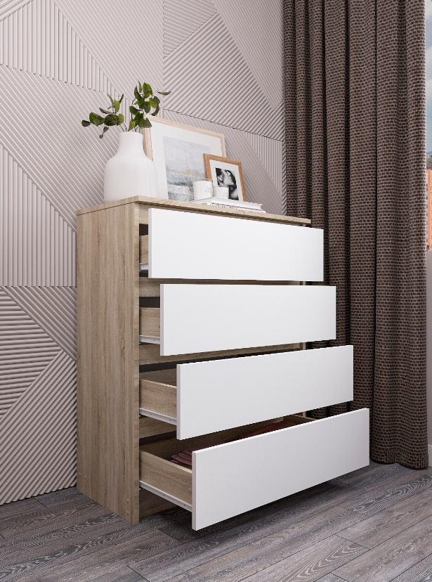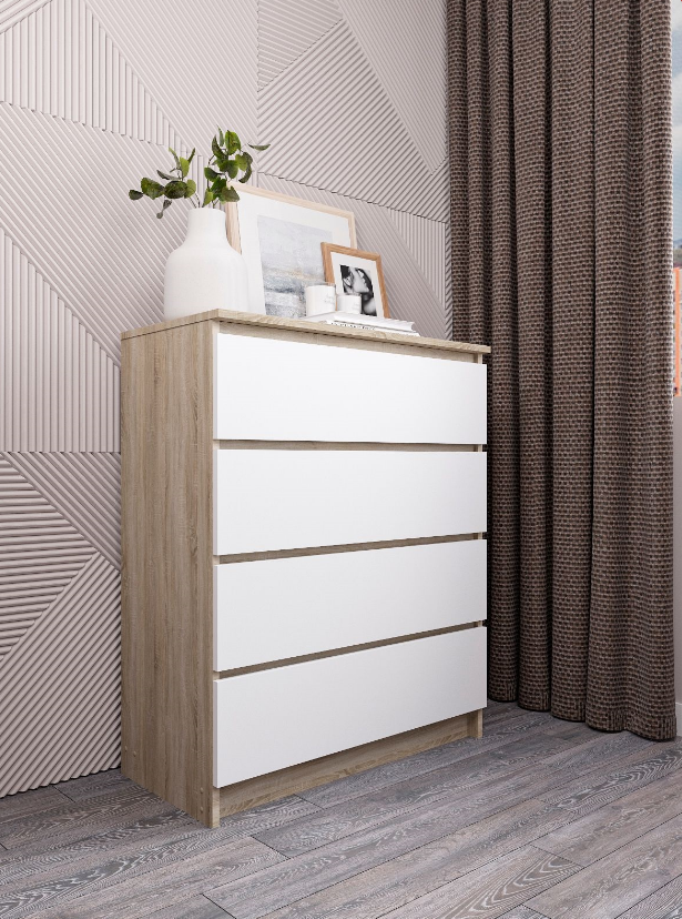 Комод "Челси" 4 ящика, 802х994х450 мм, Дуб Сонома/Белый Глянец, МИФ