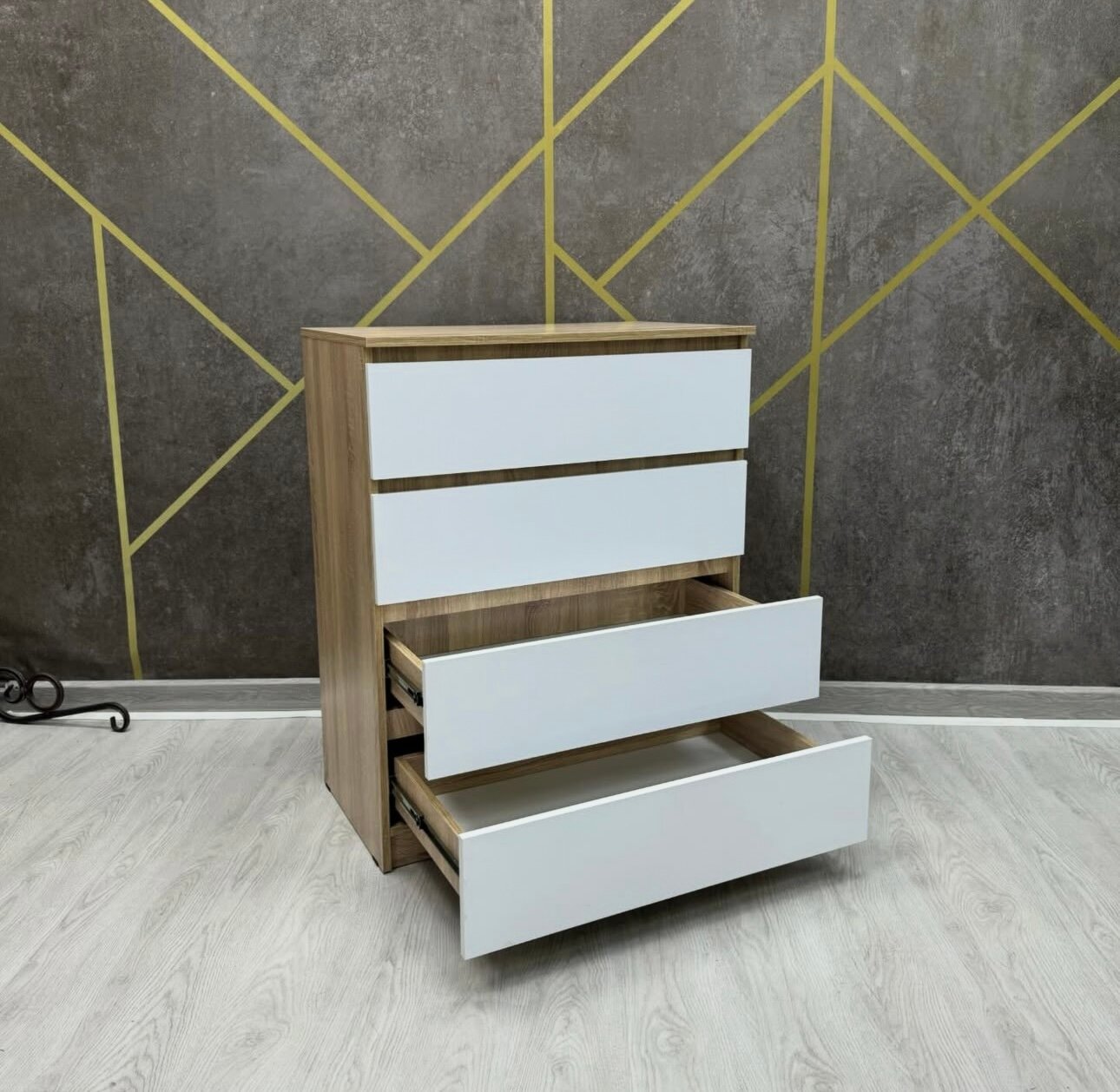Комод для одежды и вещей с ящиками Челси 4 ящика, 80×99×45 см, Белый глянец / Дуб сонома: сравнение цен, характеристики, фото, актуальное наличие и цены.