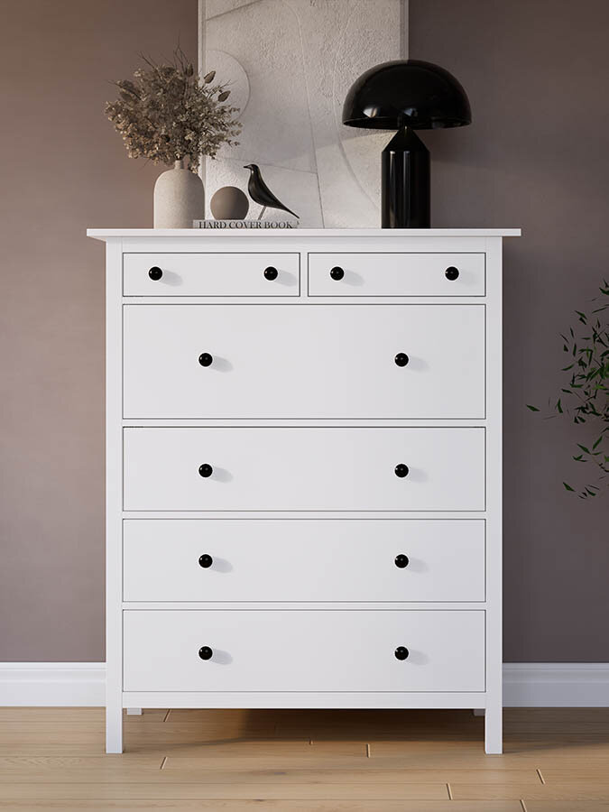 Комод КЫМОР с шестью ящиками станет отличным дополнением вашего интерьера. Этот комод идеален для хранения одежды, белья и других вещей, обеспечивая порядок и удобство в вашем доме.