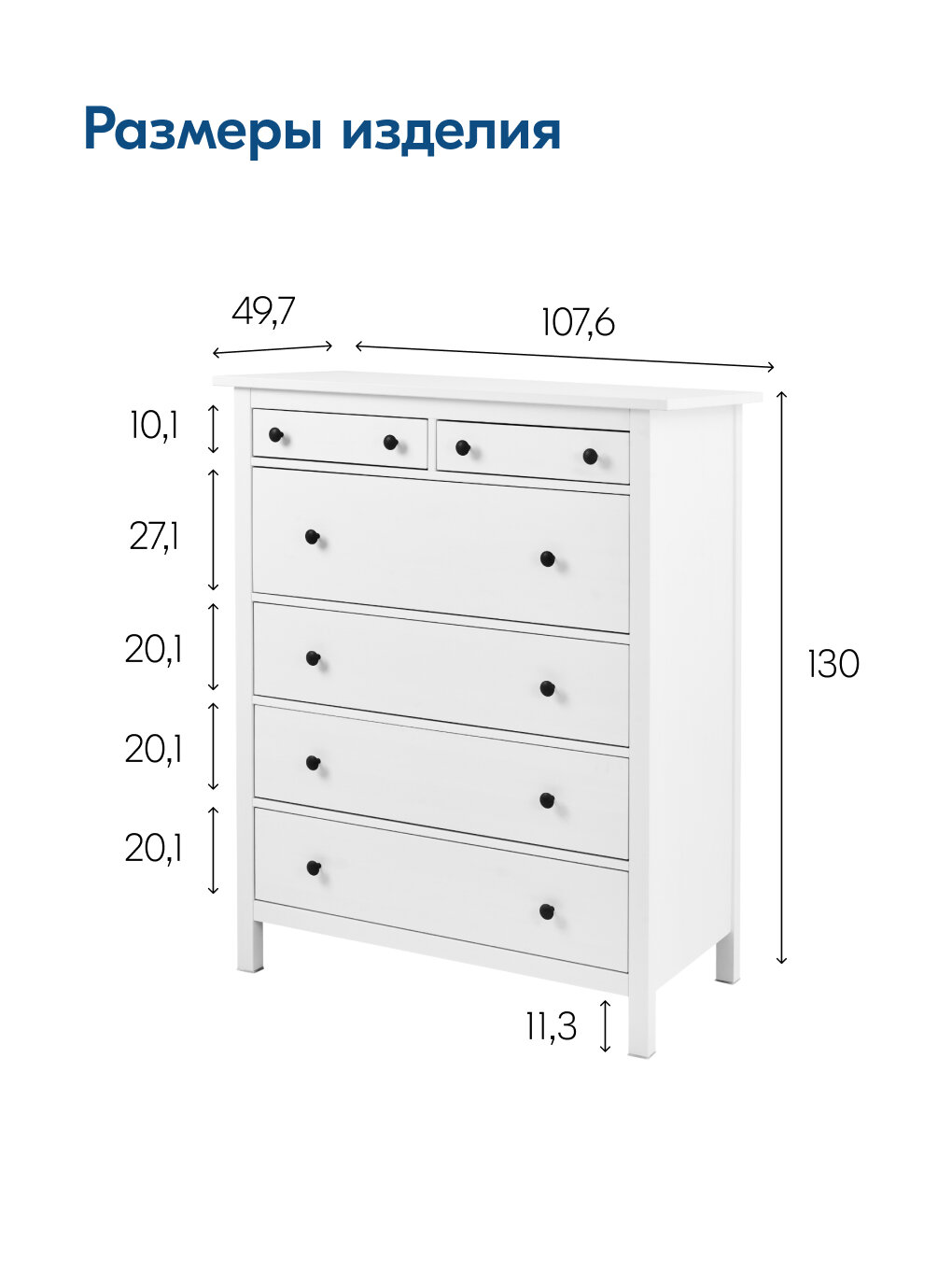 Размеры: 107,6 см (ширина) x 130 см (высота) x 49,8 см (глубина).