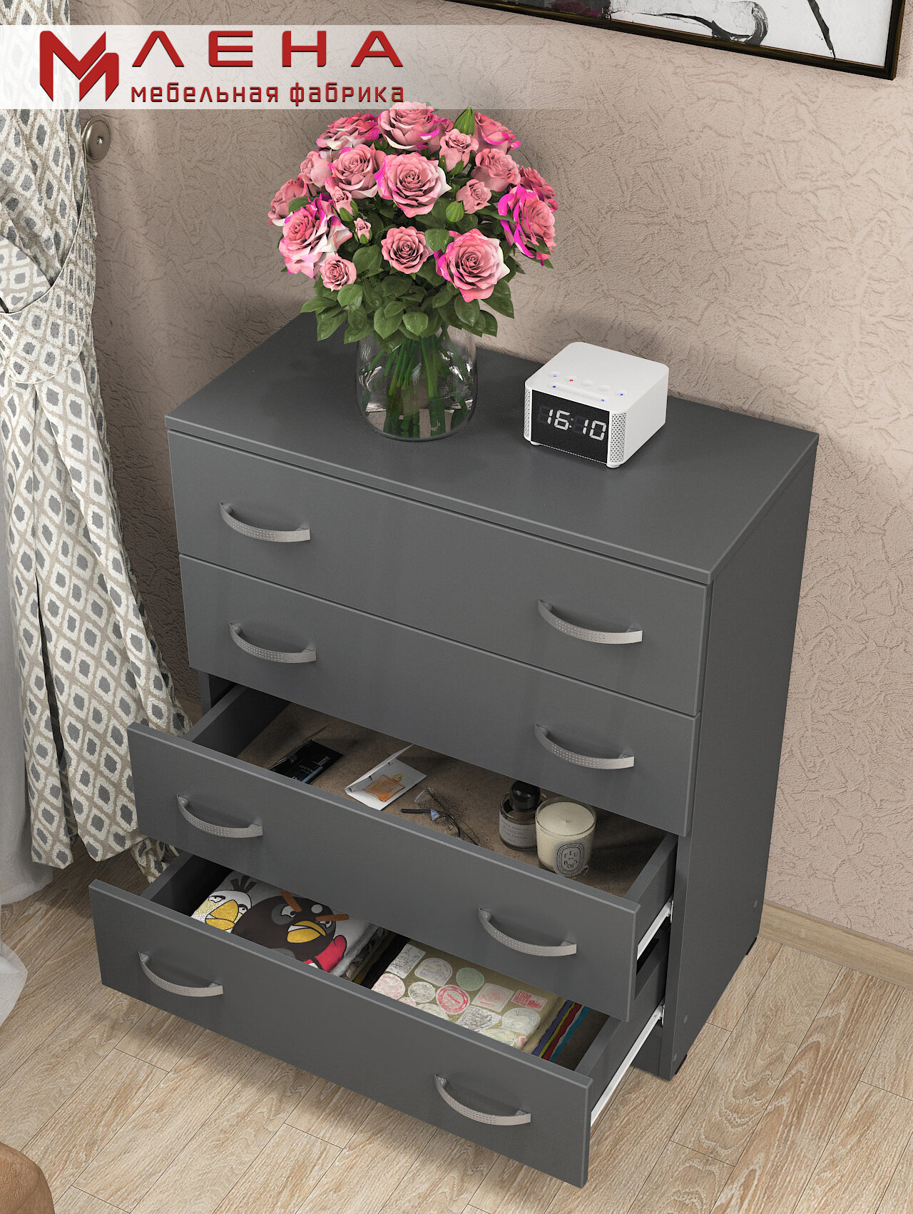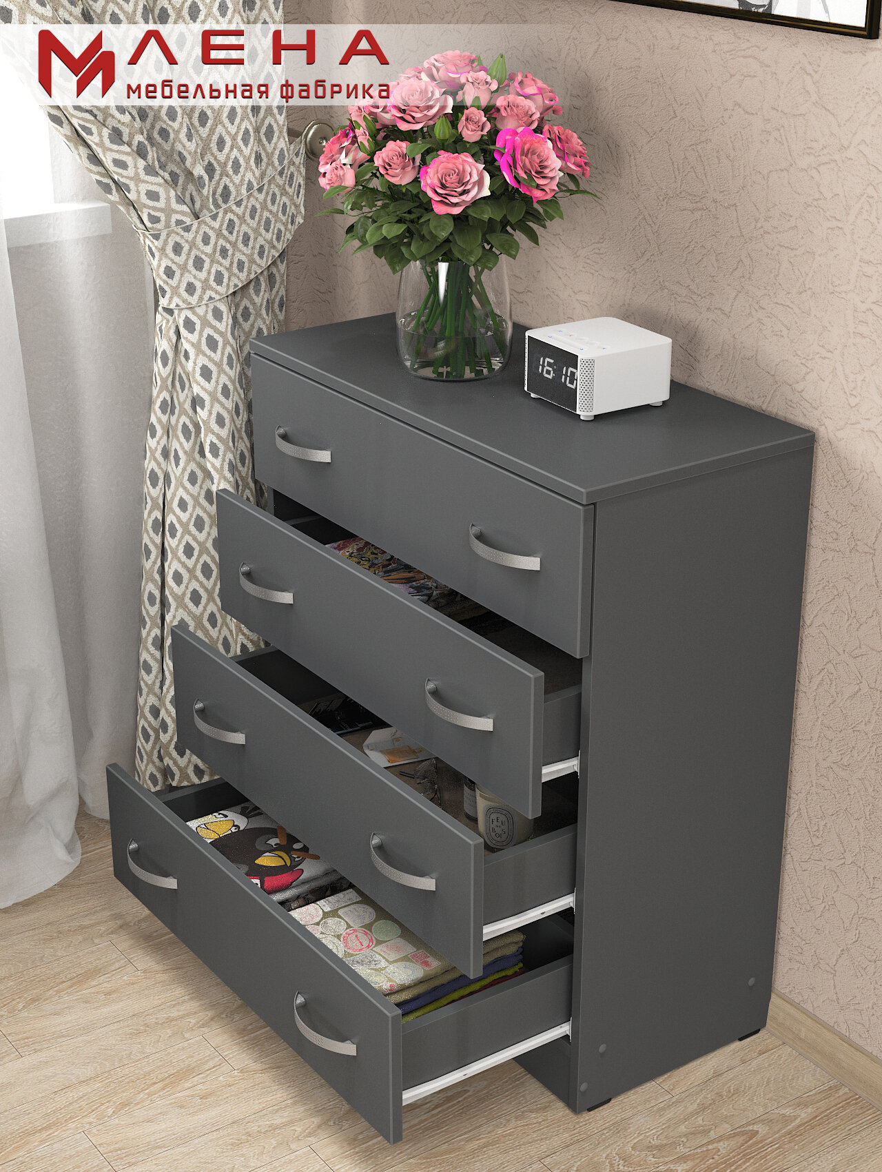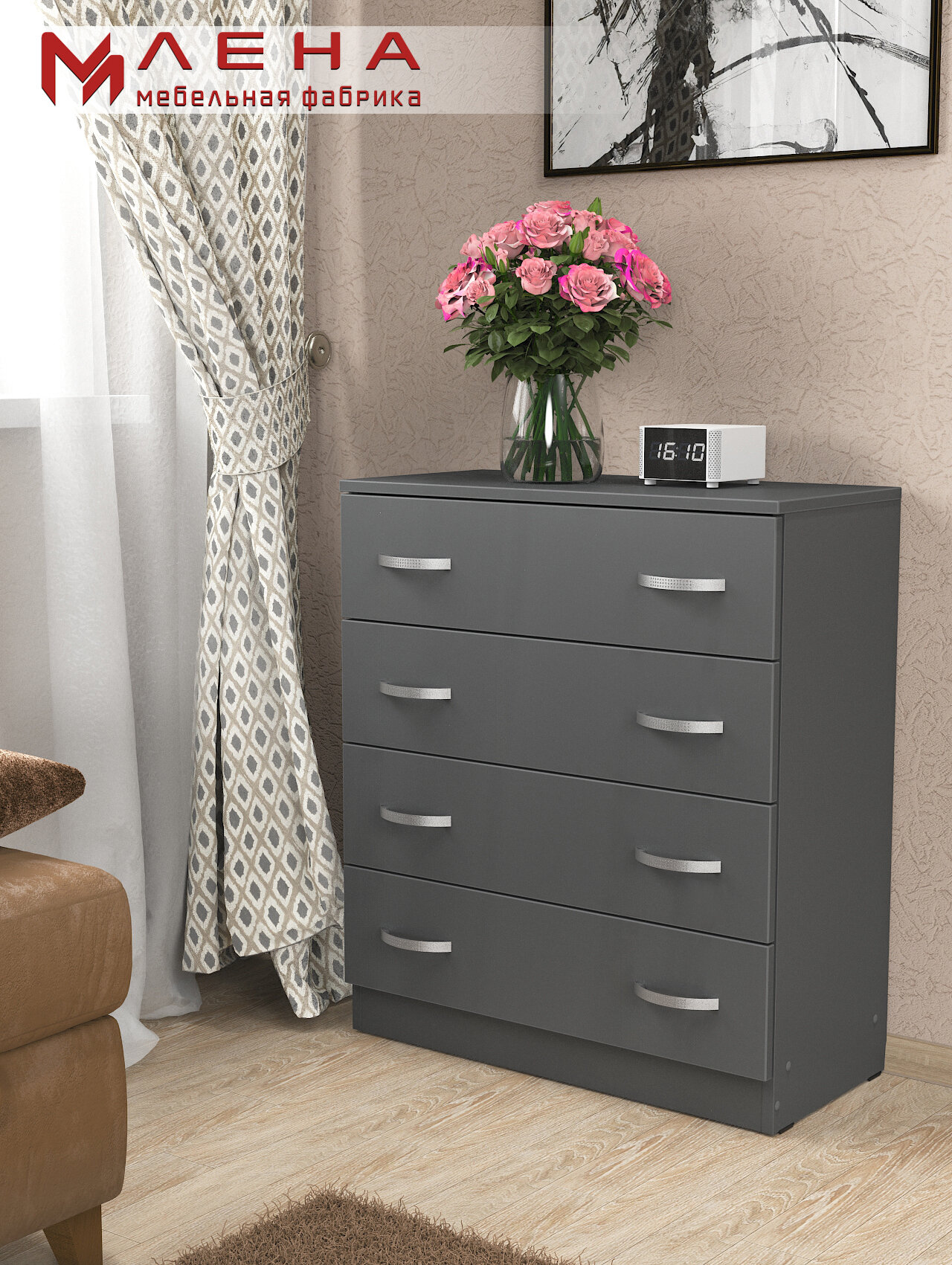 | Дополнительная информация | Комод с четырьмя ящиками с ручками |