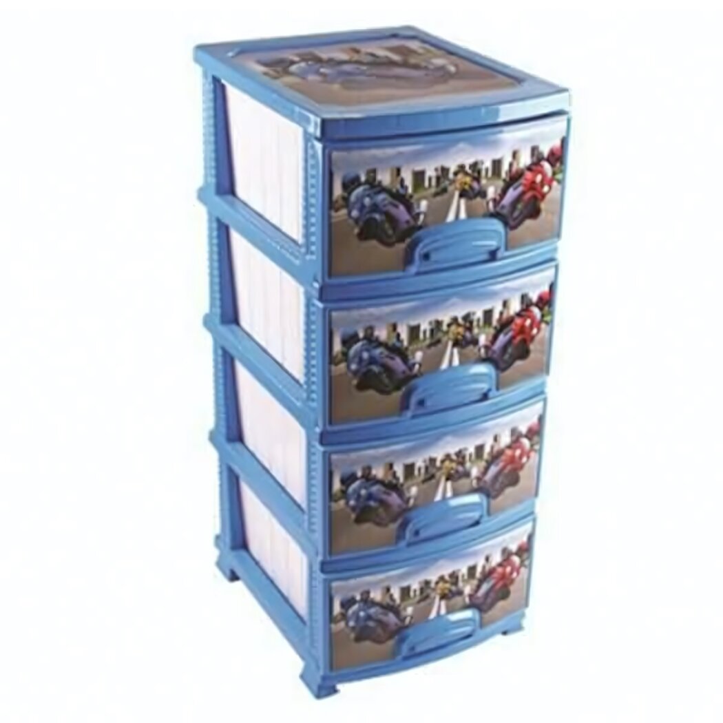 Комод детский пластиковый «Мотокросс», 4 выдвижных ящика, органайзер для игрушек, темно-голубый/белый: сравнение цен, характеристики, фото, актуальное наличие и цены.