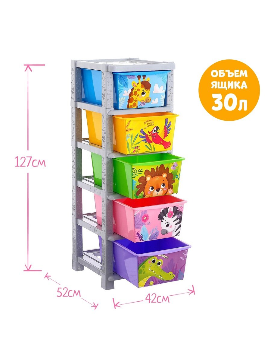Комод детский пластиковый «Веселый зоопарк», 5 секций, 127 см, Соломон