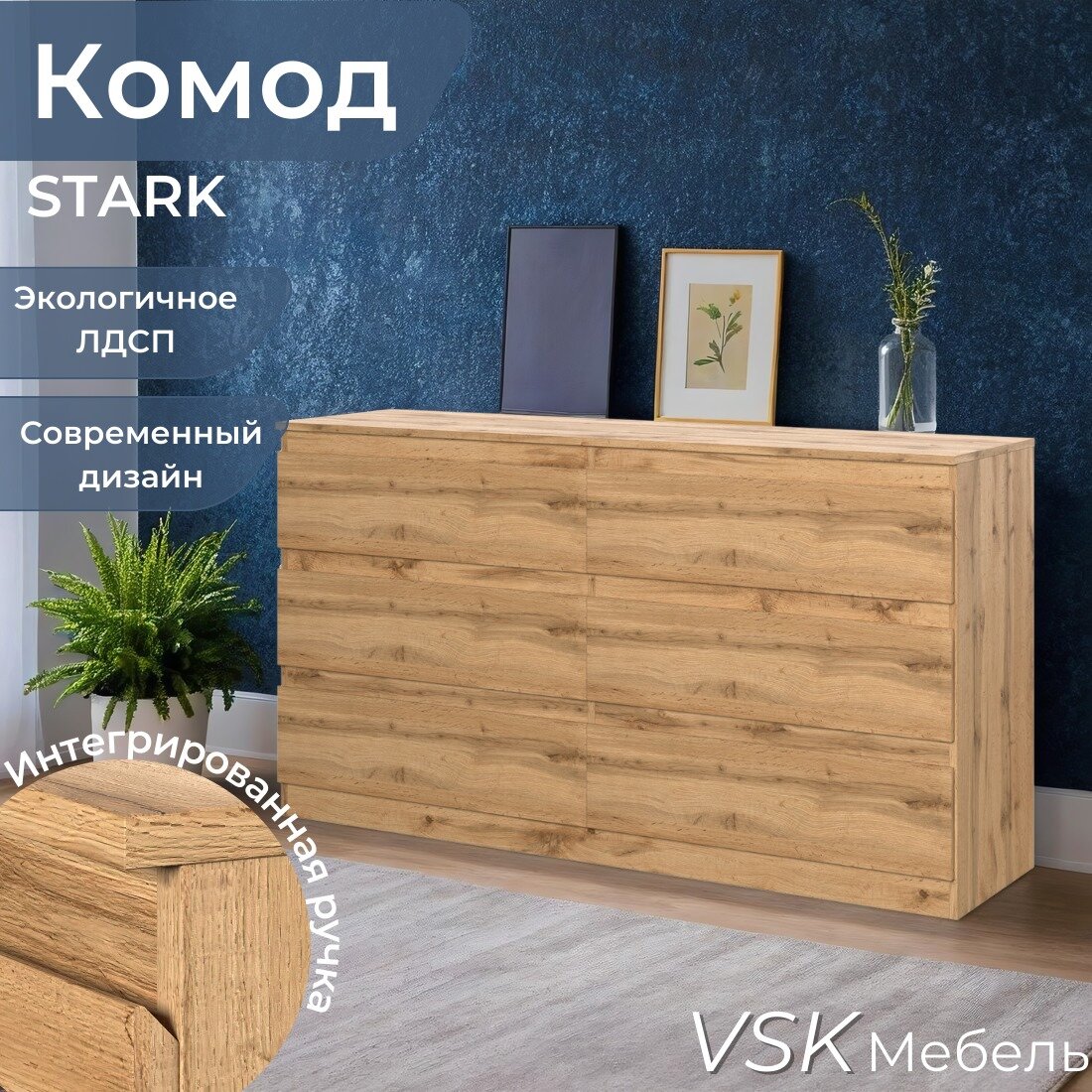 Комод для одежды (6 ящиков) STARK T-6, Дуб Вотан, 156,2 х 85,7 х 43,3 см (ШхВхГ): сравнение цен, характеристики, фото, актуальное наличие и цены.