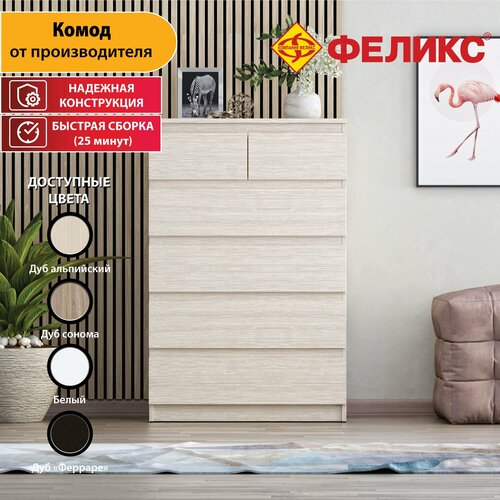 Комод для одежды Феликс Мальт 80х48х123 см, ЛДСП, 6 ящиков, Дуб Альпийский: сравнение цен, характеристики, фото, актуальное наличие и цены.