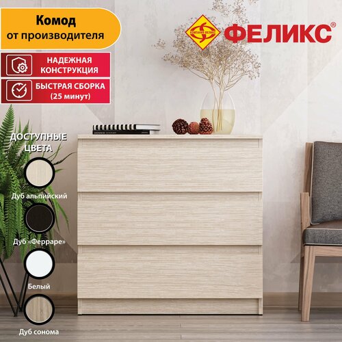 Купить Комод для одежды деревянный Феликс Мальт 80х48х78 см, ЛДСП, 3 ящика, Дуб Альпийский бежевый с доставкой по всей России.