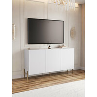 Комод под телевизор Селлин - это предмет мебели, который будет центральным элементом вашей гостиной. Комод под ТВ изготовлен лучшими мастерами из высококачественных материалов, комод Селлин произведен с использованием системы push-to-open для легкого открывания фасадов нажатием. Комод выполнен без видимых следов крепежа и состоит из 3-х закрытых секций для удобного хранения. Элегантный комод под ТВ в стиле арт-деко в интерьере смотрится весьма оригинально. Столешница, напоминающая настоящий мрамор, выглядит нестандартно и привлекает внимание. Белый корпус с бежевыми матовыми фасадами и золотистыми металлическими ножками - идеальное решение для любой современной гостиной.