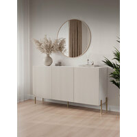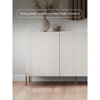 Комод под телевизор Селлин - это предмет мебели, который будет центральным элементом вашей гостиной. Комод под ТВ изготовлен лучшими мастерами из высококачественных материалов, комод Селлин произведен с использованием системы push-to-open для легкого открывания фасадов нажатием. Комод выполнен без видимых следов крепежа и состоит из 3-х закрытых секций для удобного хранения. Элегантный комод под ТВ в стиле арт-деко в интерьере смотрится весьма оригинально. Столешница, напоминающая настоящий мрамор, выглядит нестандартно и привлекает внимание. Белый корпус с бежевыми матовыми фасадами и золотистыми металлическими ножками - идеальное решение для любой современной гостиной.