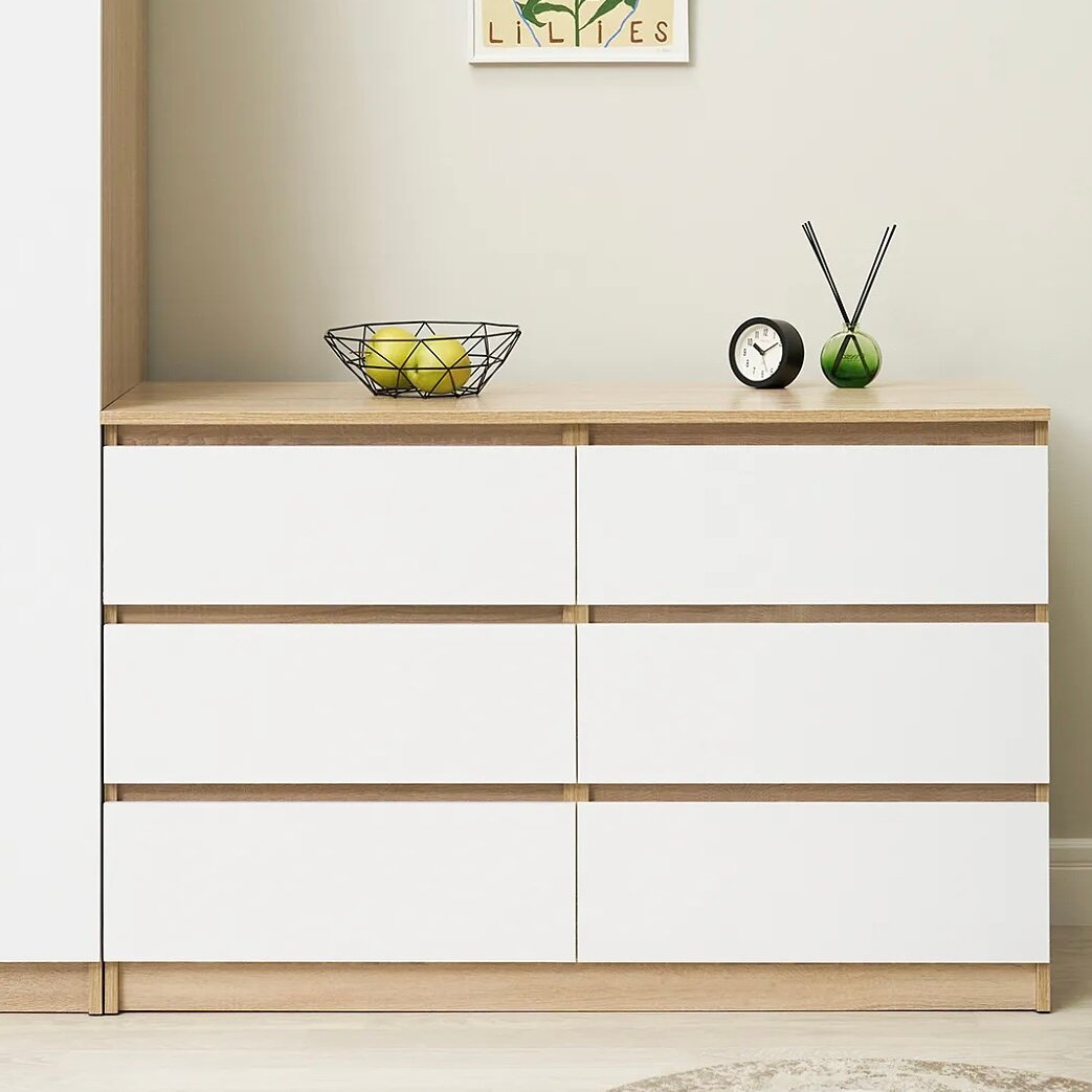 Комод для одежды и вещей 6 ящиков Челси, 120х77х45 см, Белый глянец / Дуб сонома: сравнение цен, характеристики, фото, актуальное наличие и цены.
