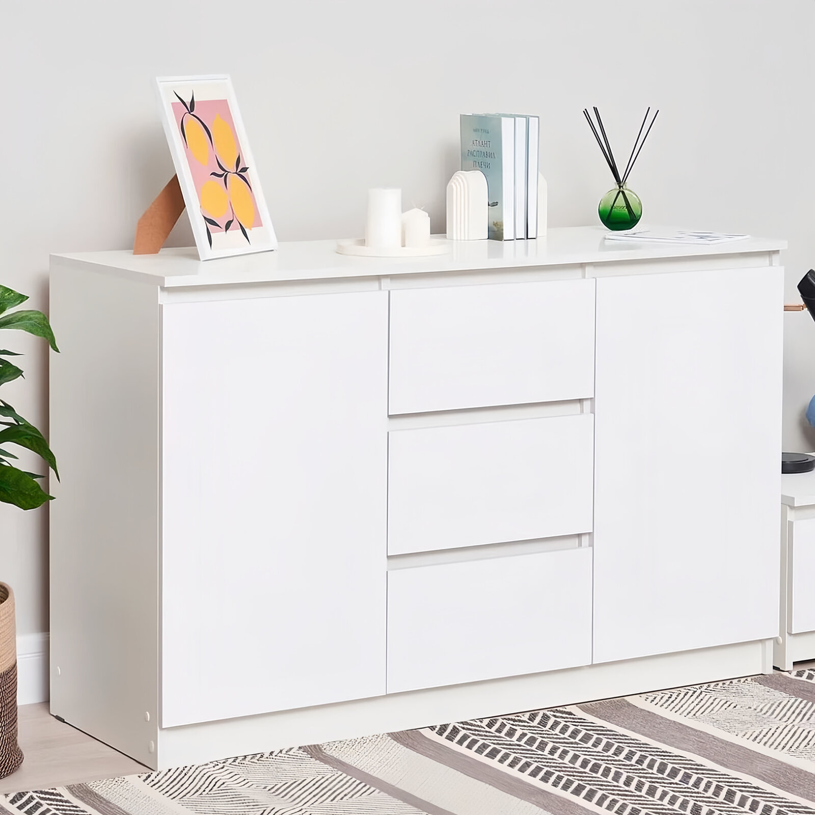 Комод Челси с двумя дверями и тремя ящиками в белом цвете с холодным белым глянцем – идеальное решение для современного интерьера. Просторные ящики и отделения за дверями обеспечивают достаточное место для хранения. Этот комод добавит элегантности и свежести в вашу комнату.