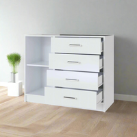 Материал корпуса и фасада комода - ЛДСП, что обеспечивает прочность и долговечность изделия.